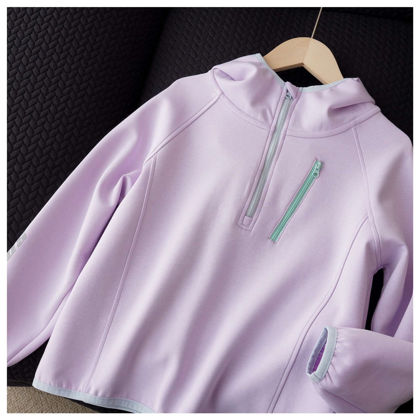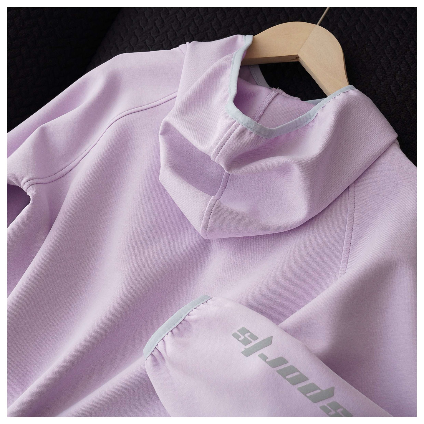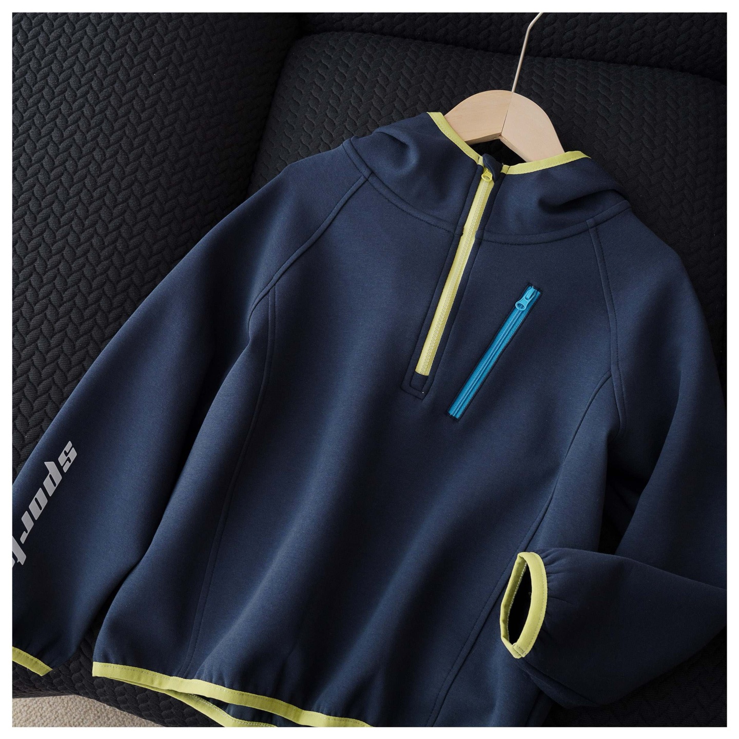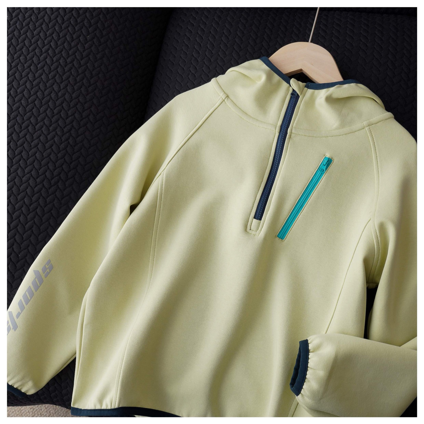 插肩袖+半开襟拉链设计 袖上反光字母