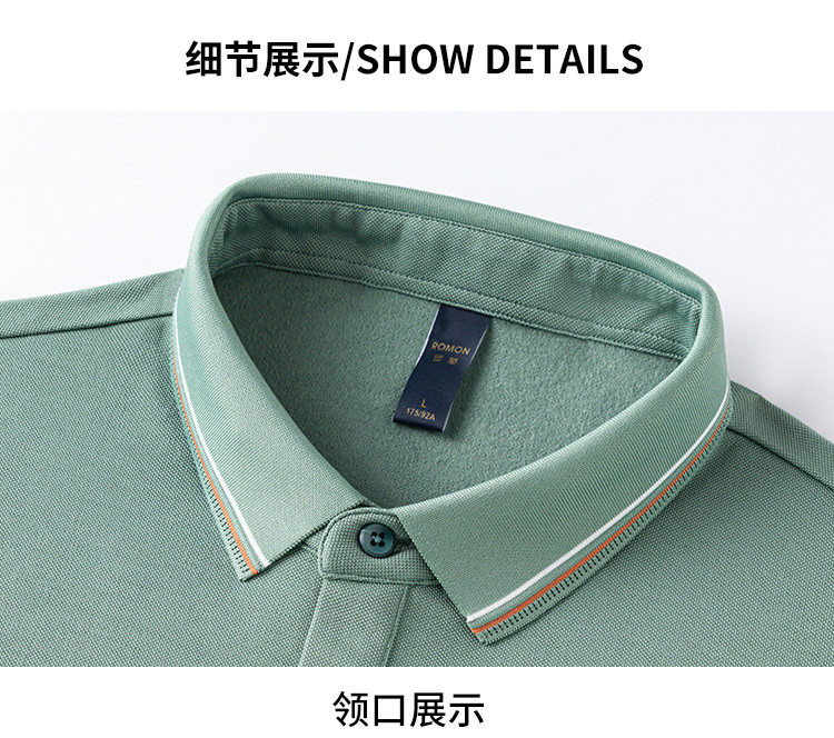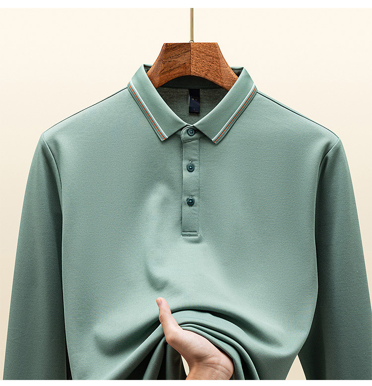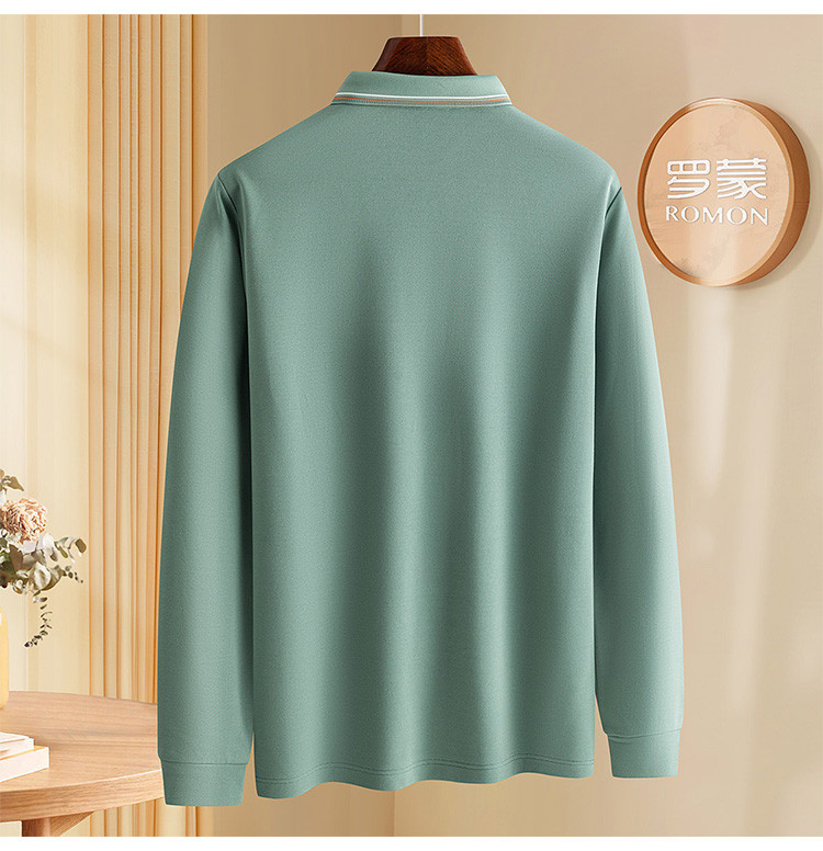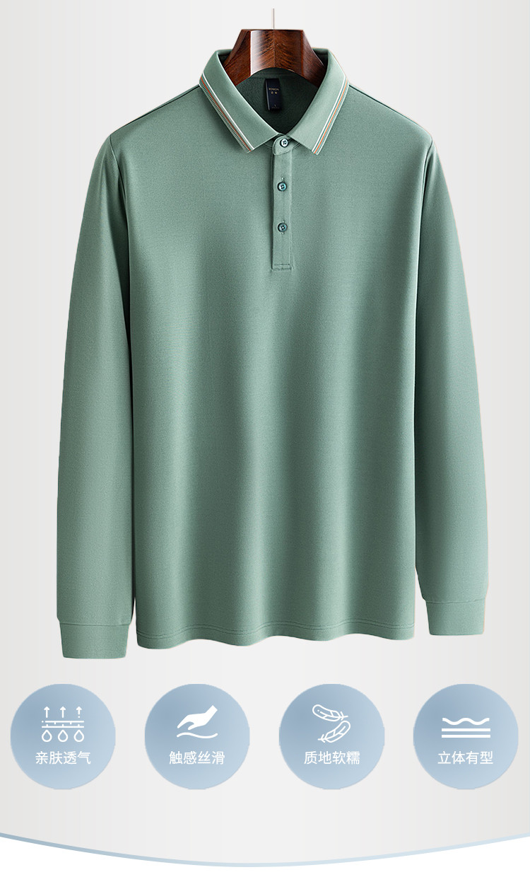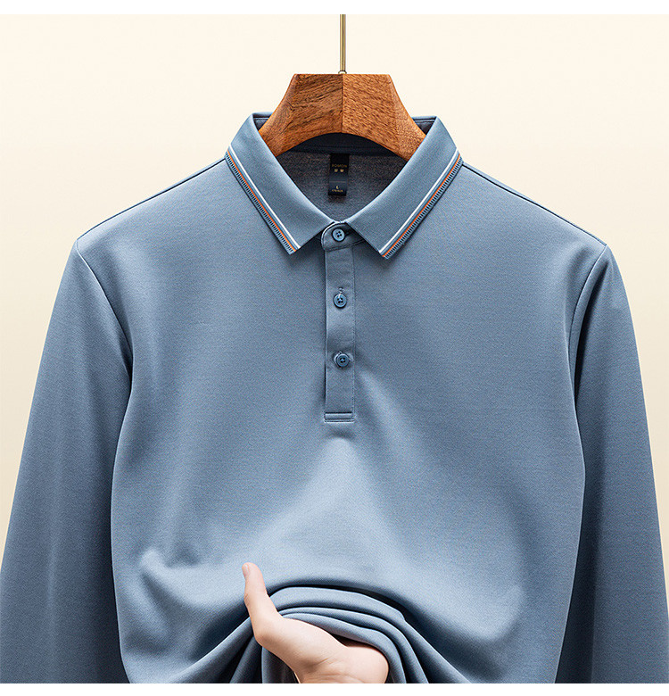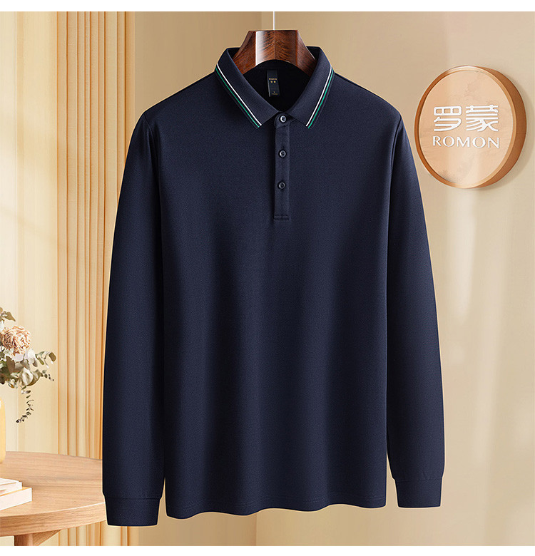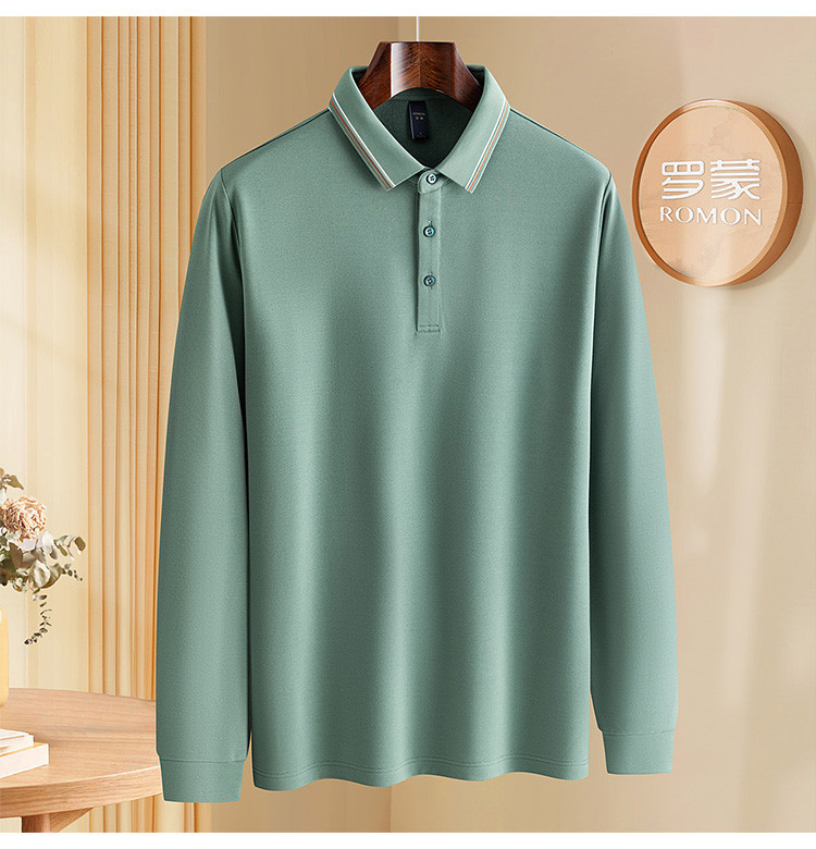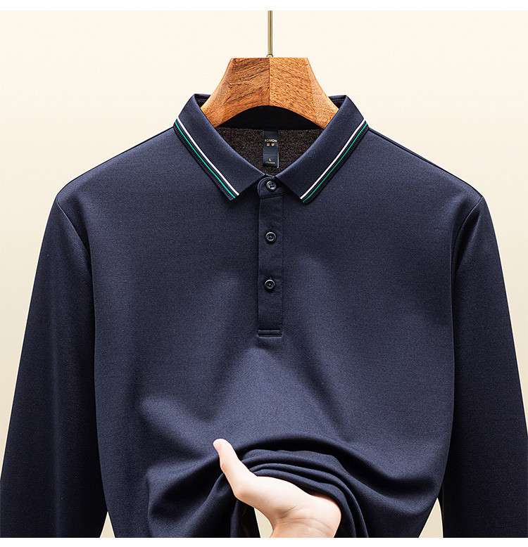 罗蒙秋冬保暖男士Polo衫含羊毛蚕丝双面磨毛撞色领休闲商务长袖polo衫