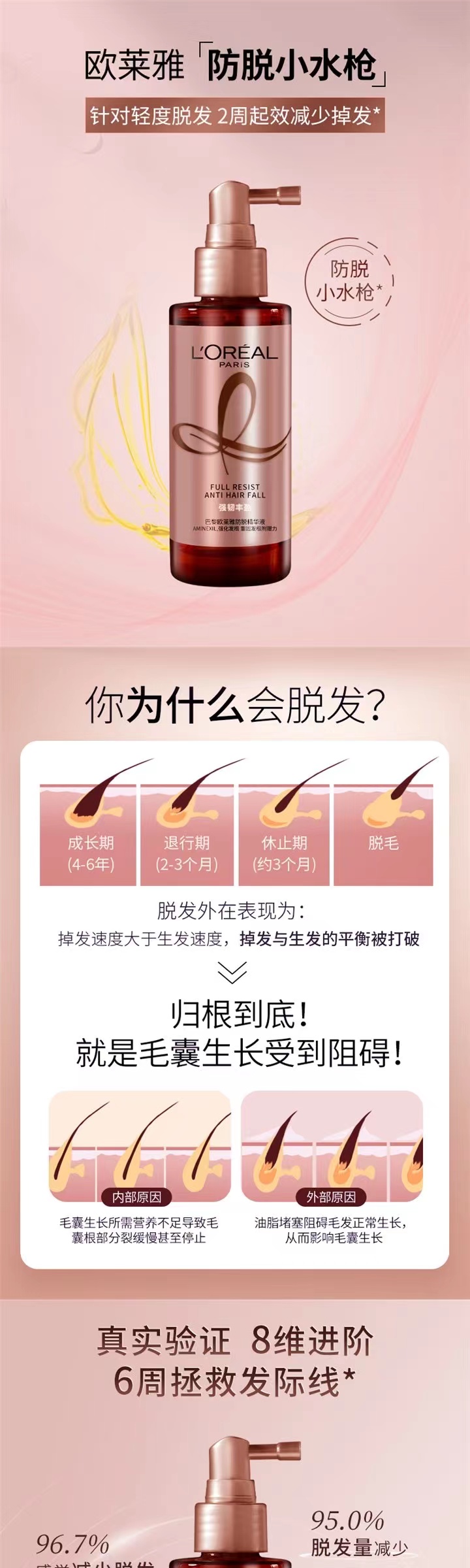 欧莱雅防脱小水枪喷雾固发护发防脱发头皮护理精华液90ml