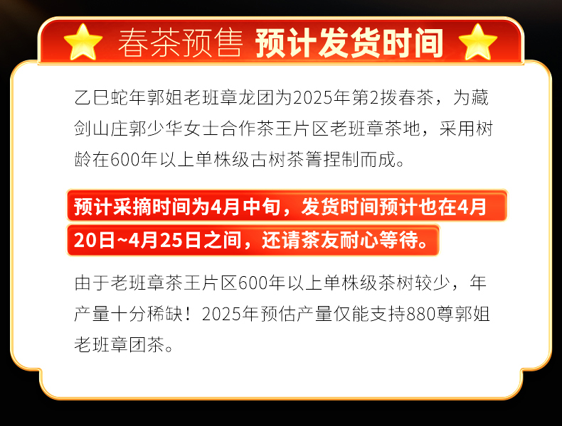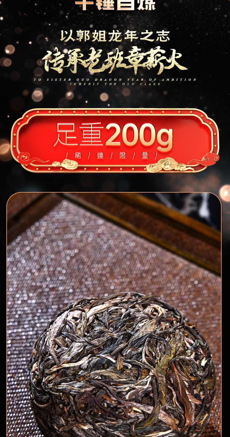 2025年春茶预售 郭姐老班章600年单株级老班章《郭姐龙团》200克/团/盒!预定5团赠1团!整箱18团赠4团!