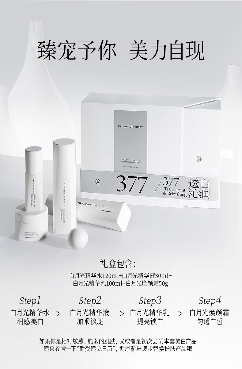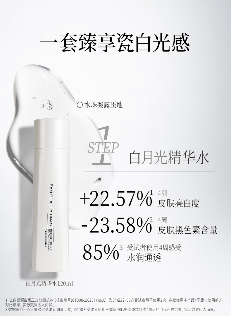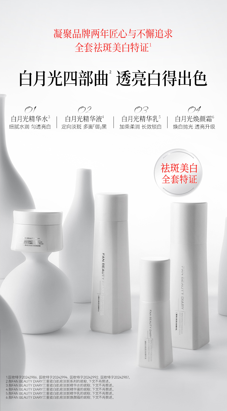 【双十二返场】【白月光四部曲】 淡斑精粹水120ml+精粹乳100ml+精华30ml+霜50g