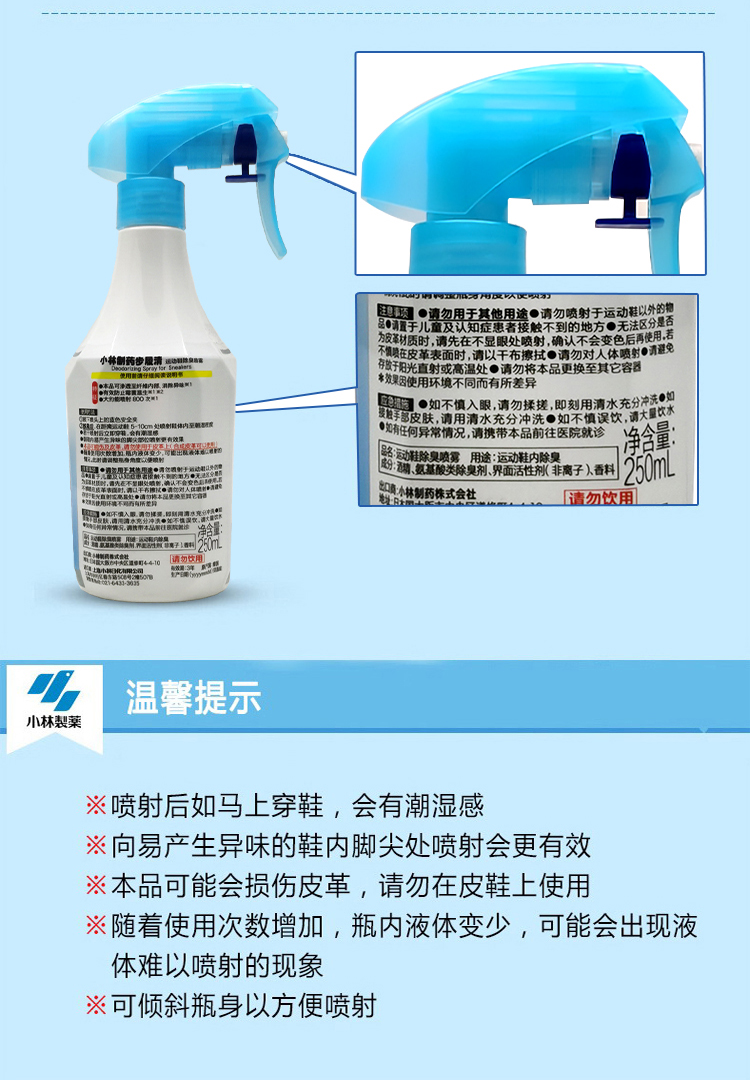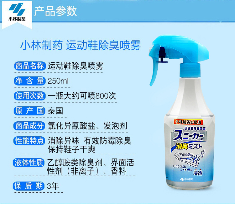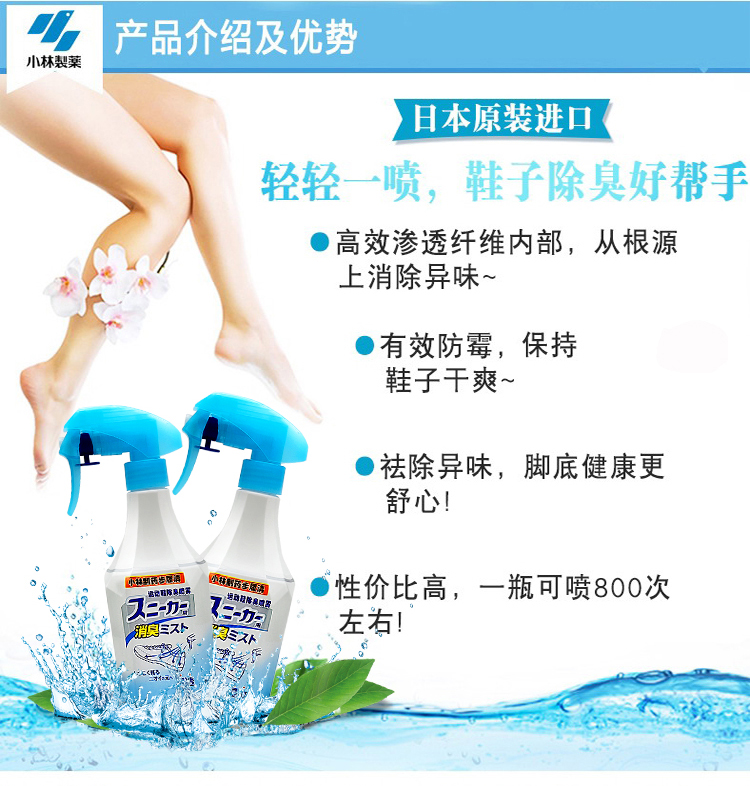 小林制药日本进口去异味杀菌消臭喷剂鞋袜防臭鞋子运动鞋用除臭剂喷雾250ml