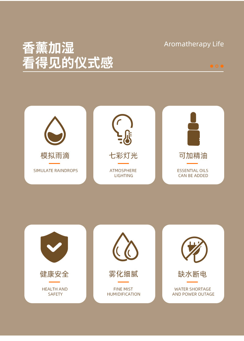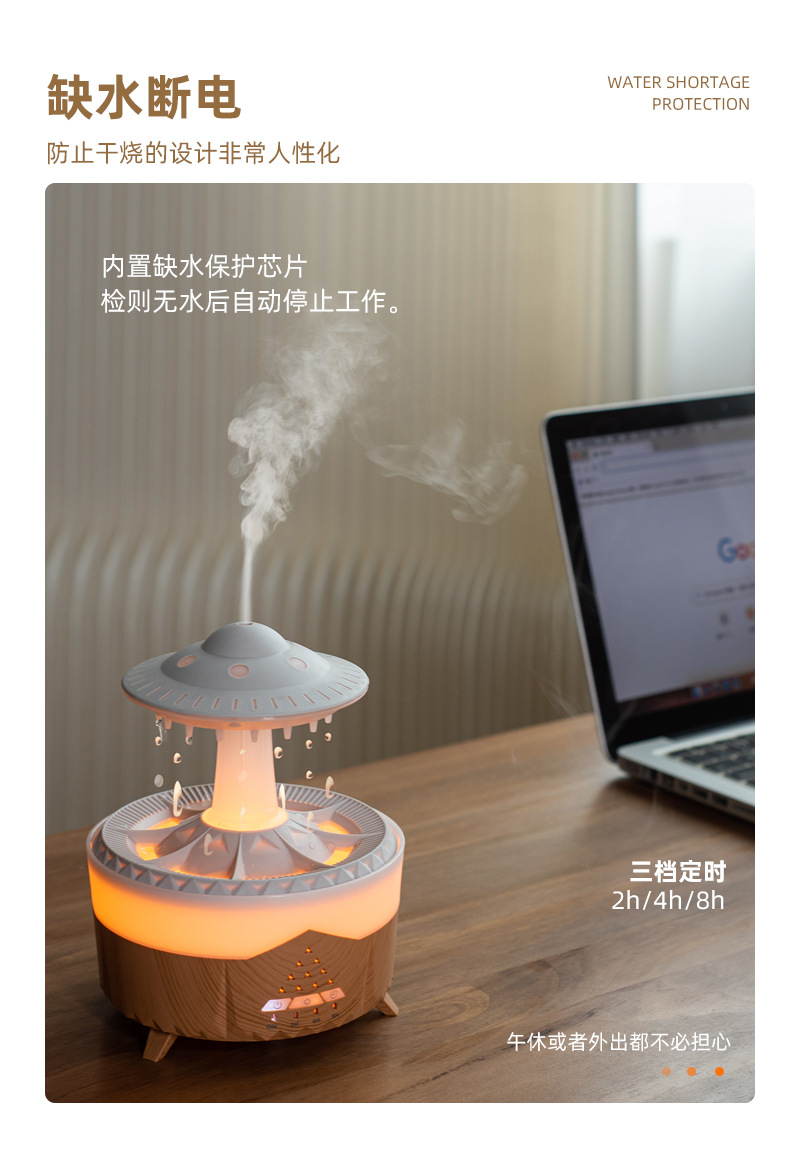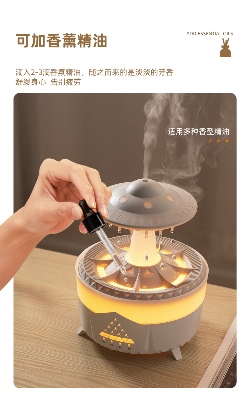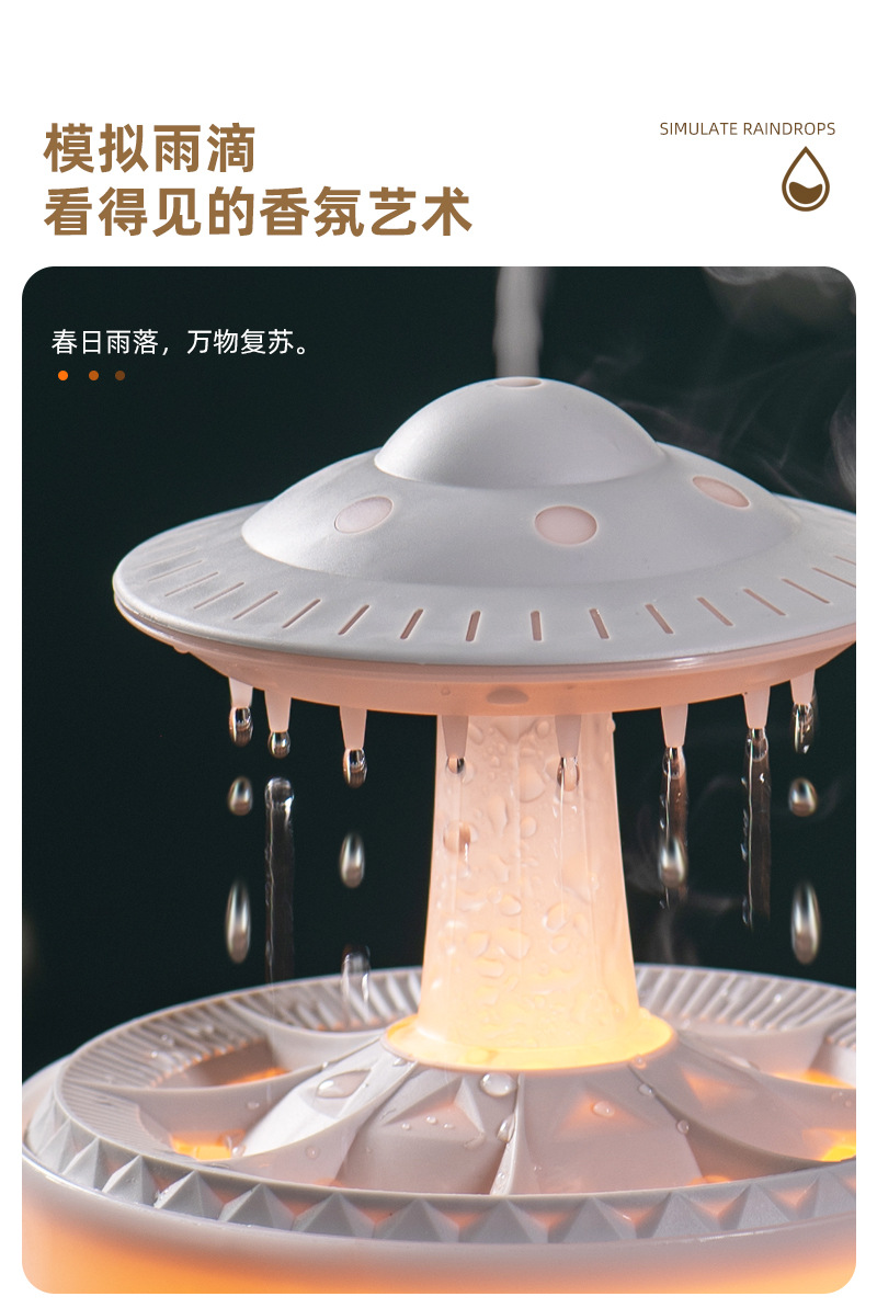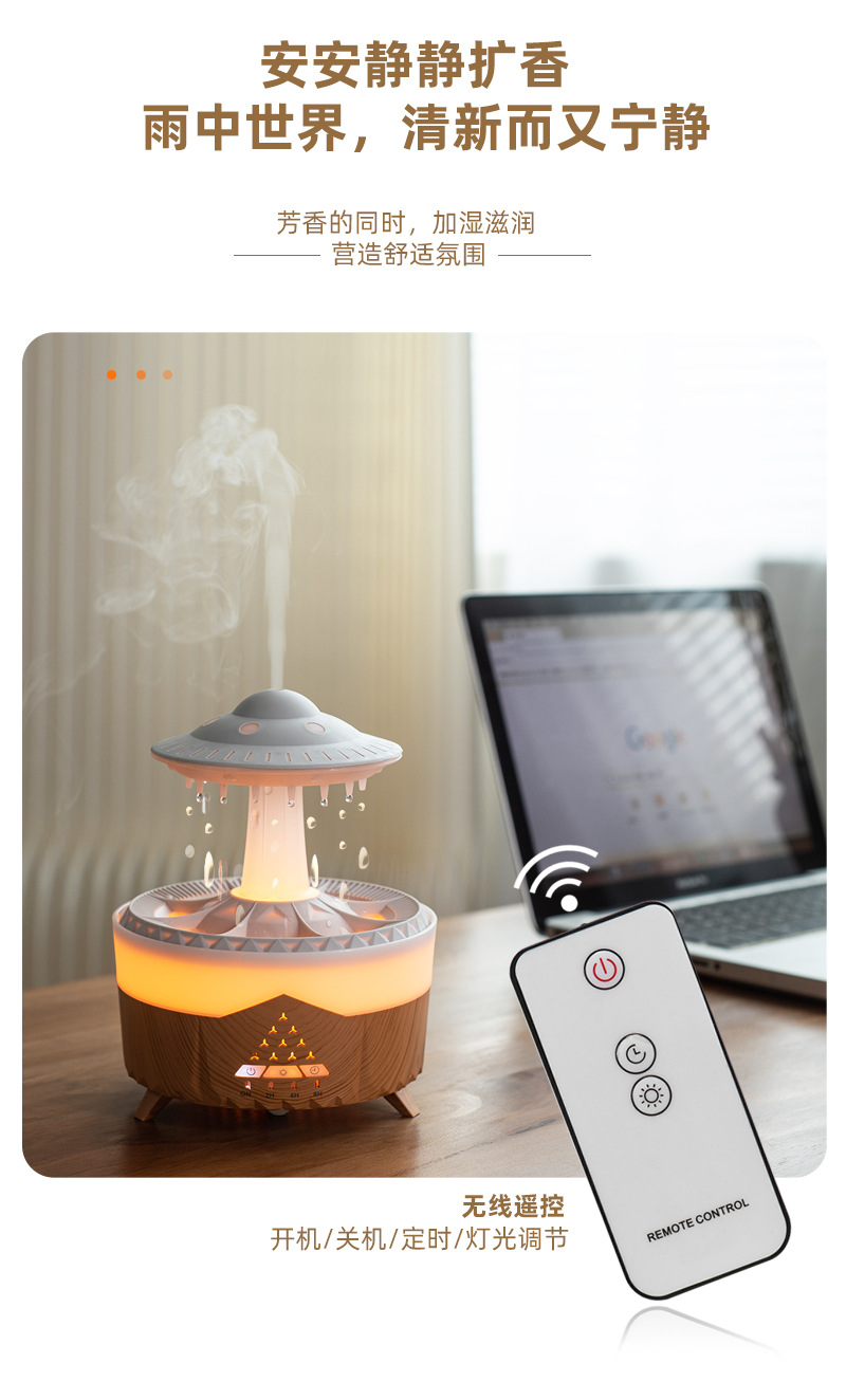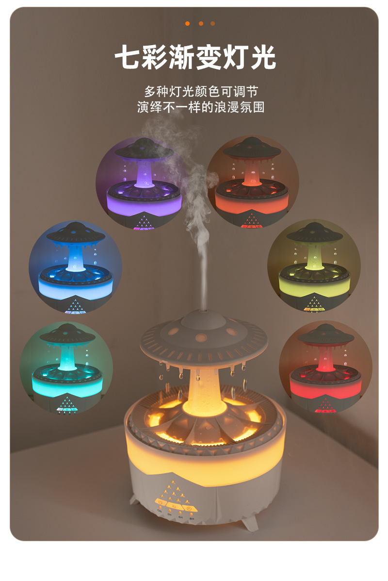 【模拟雨滴七彩灯光❗️新款水滴香薰机】模拟雨滴加湿器家用大雾量桌面静音遥控式精油扩香机家用夜灯-dd