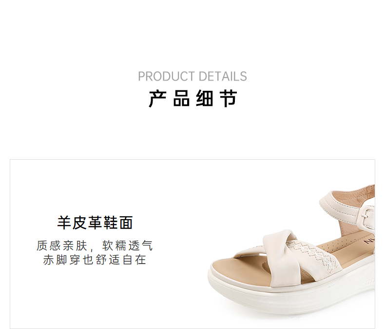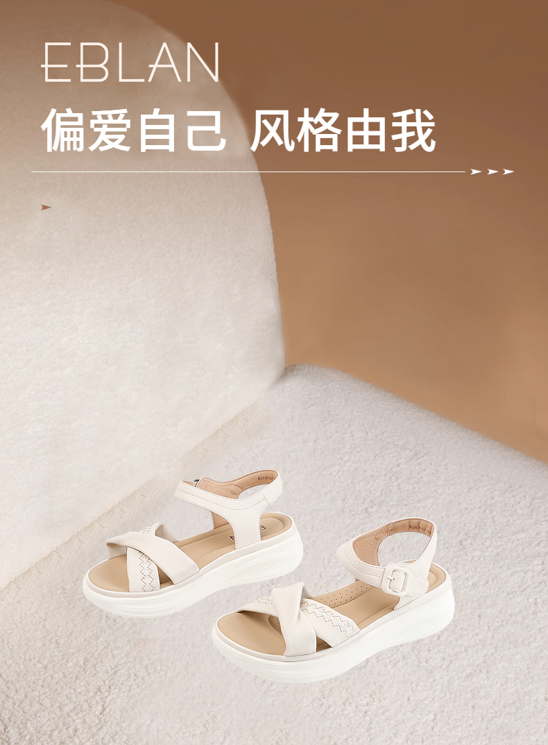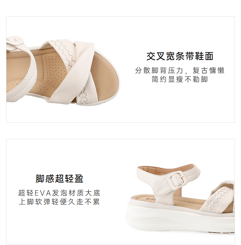伊伴2026夏季超轻软舒适透气真羊皮鞋面百搭凉鞋B26365210
