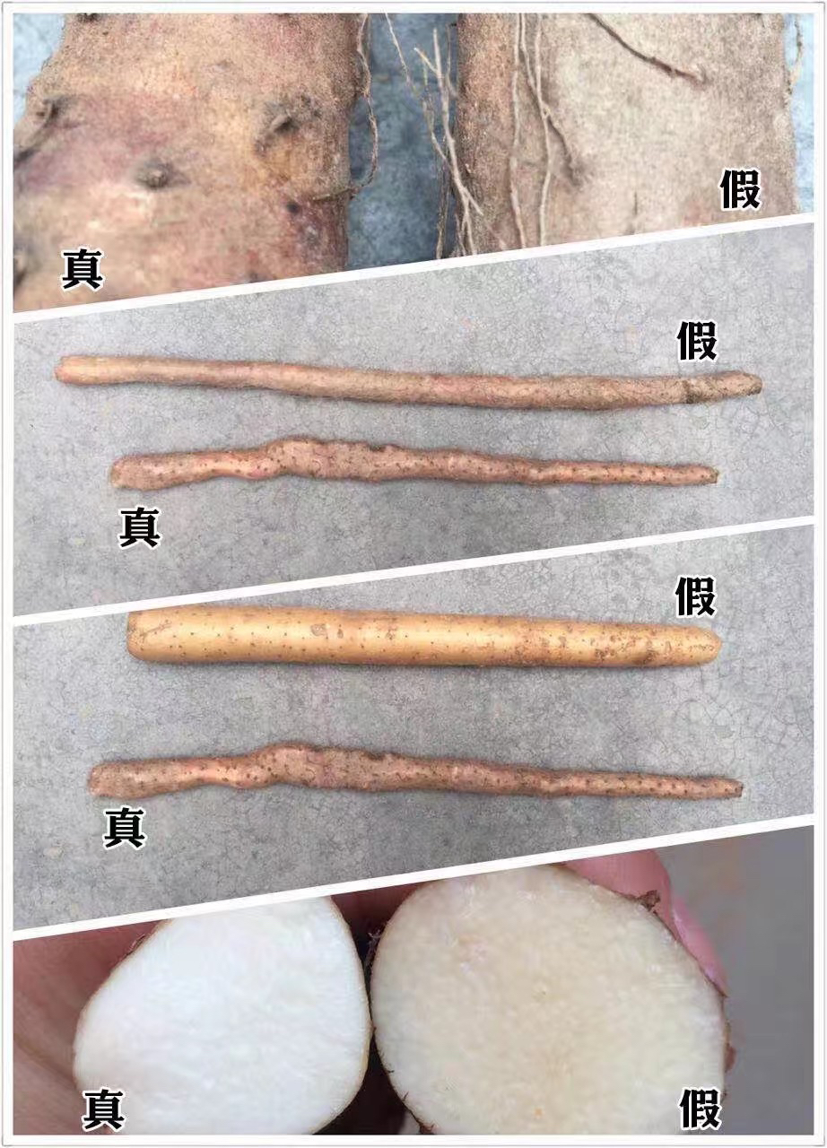 颜色非常白,通常是采用熏过硫的山药磨制而成,硫磺熏过的山药晾晒干后会增白。长期使用危害人体健康