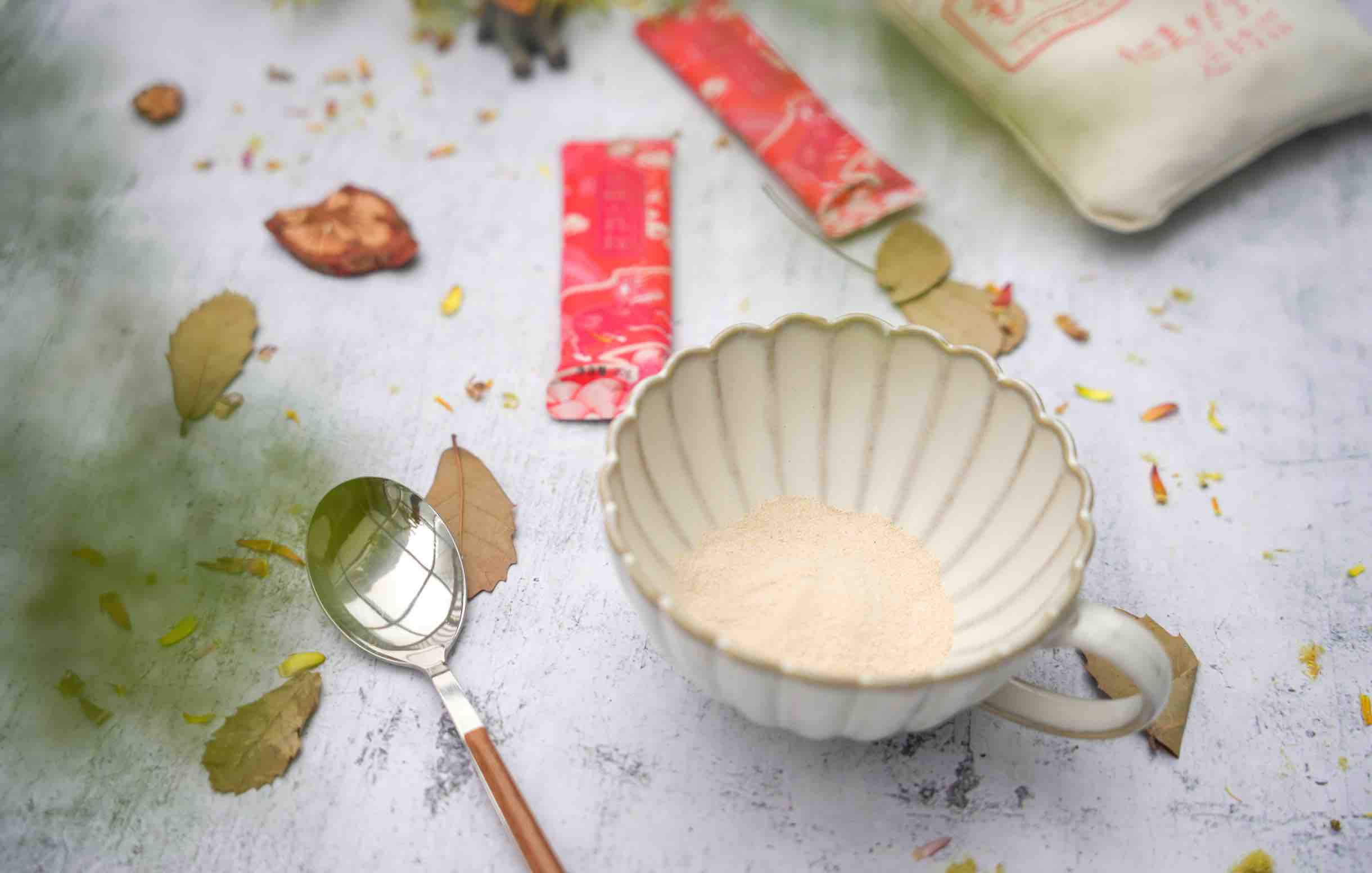 麸炒山药粉颜色微黄,粉质细腻,用热水冲开后即可食用,口感顺滑,浓香似奶茶。
