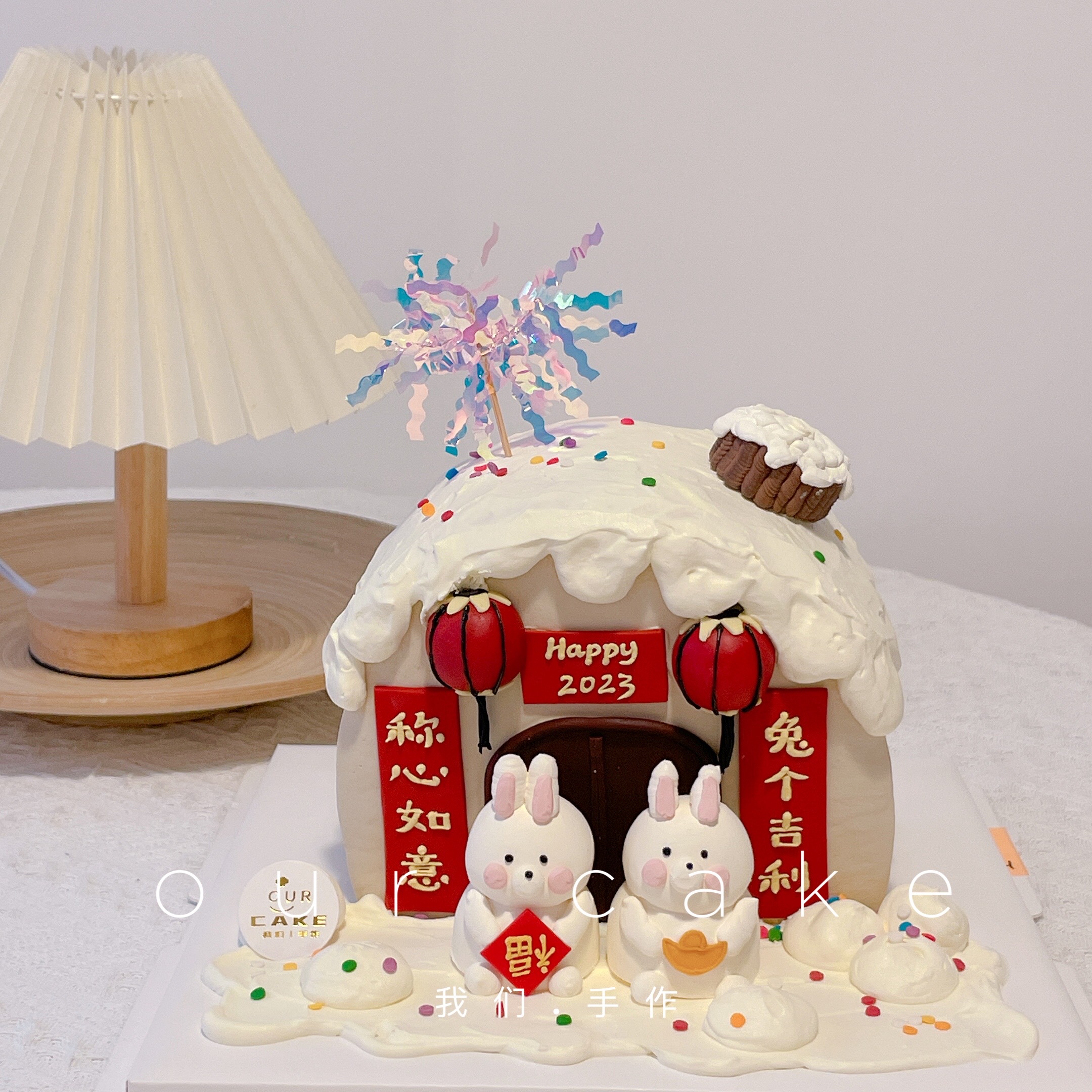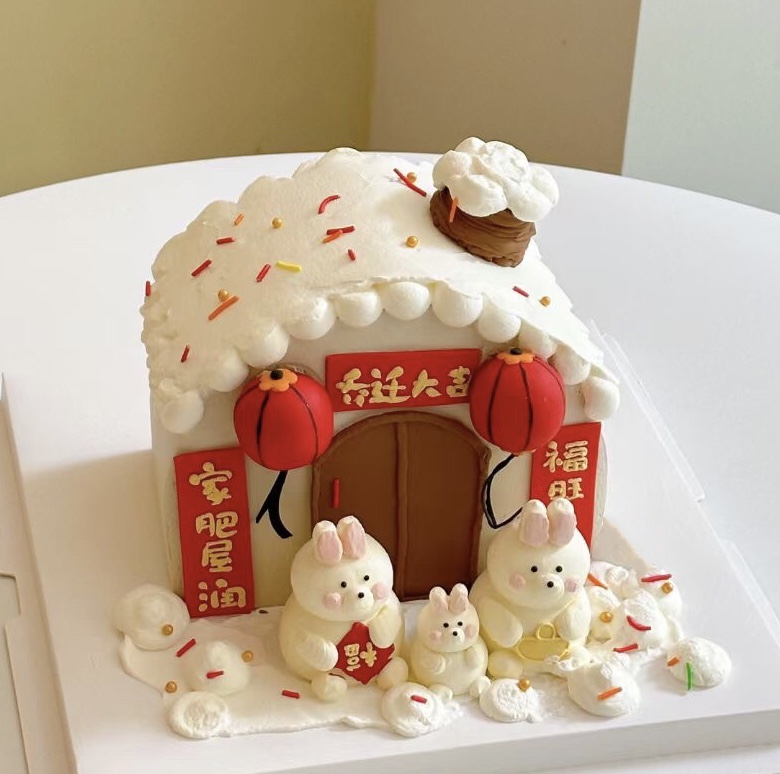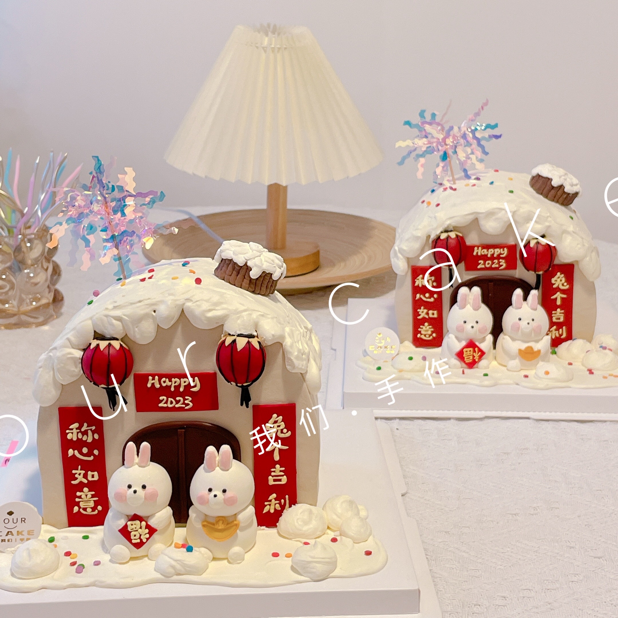 多款式~小兔子新房子乔迁搬家手绘蛋糕-低糖处理无添加