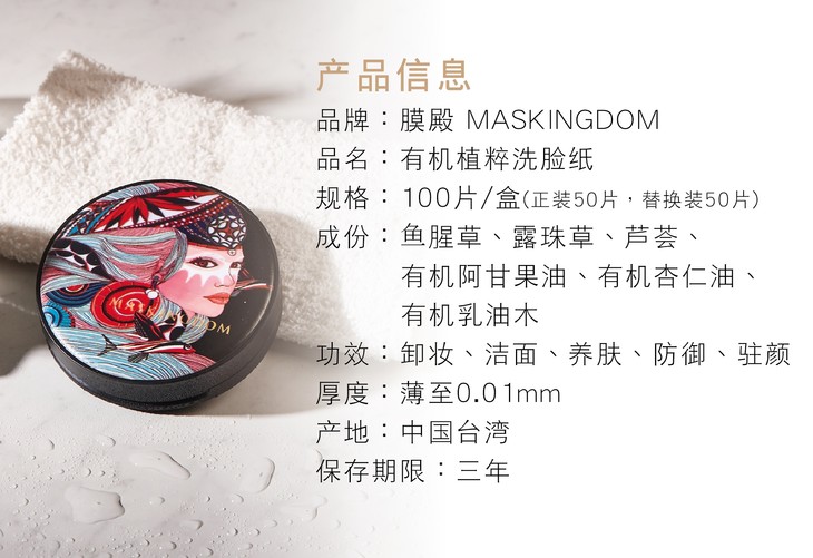 3.6女神节秒杀 | 台湾膜殿有机植萃洗脸纸(不支持无理由退换)有效期至2022年4月[福利品]