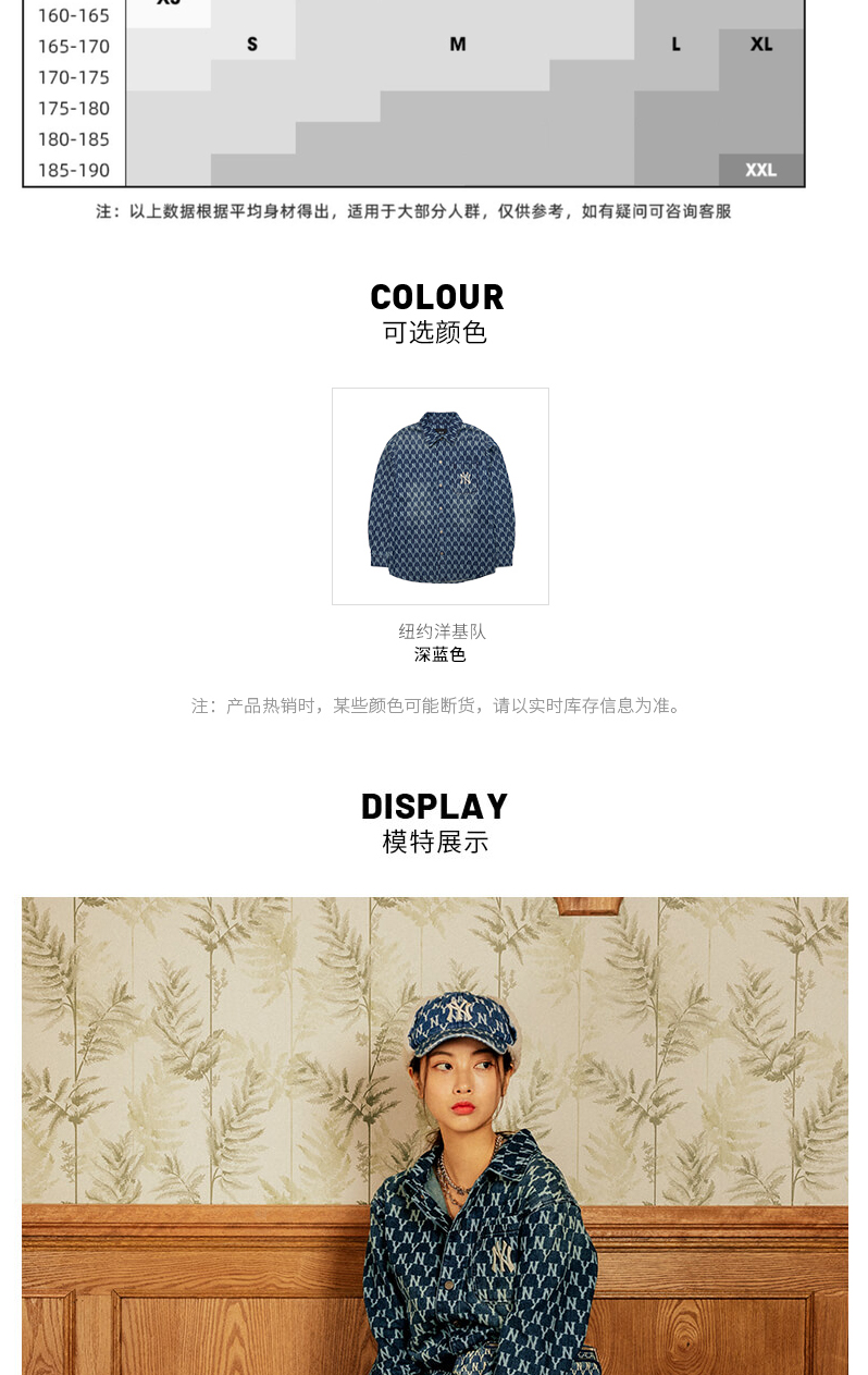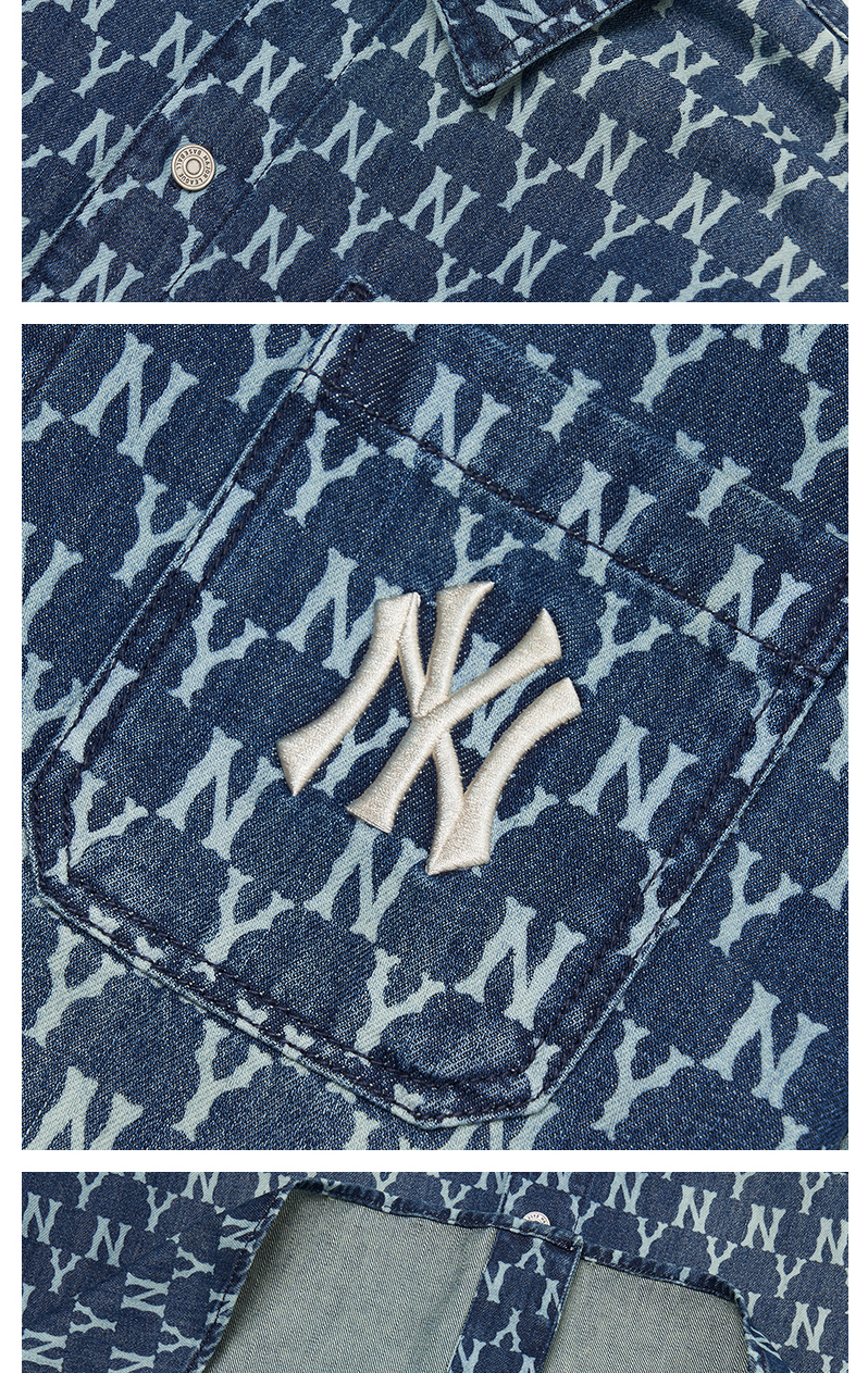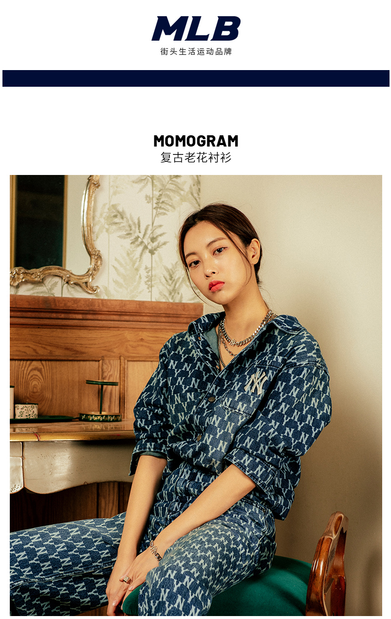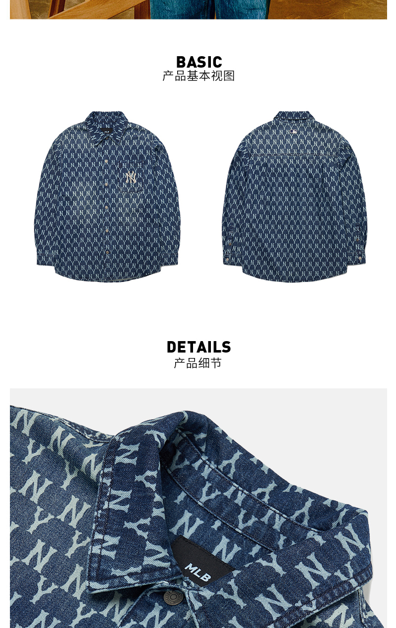 MLB男女衬衫复古老花牛仔休闲情侣防风薄外套春季新款3AWSN3014