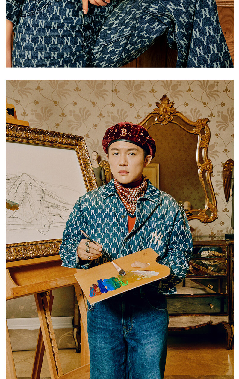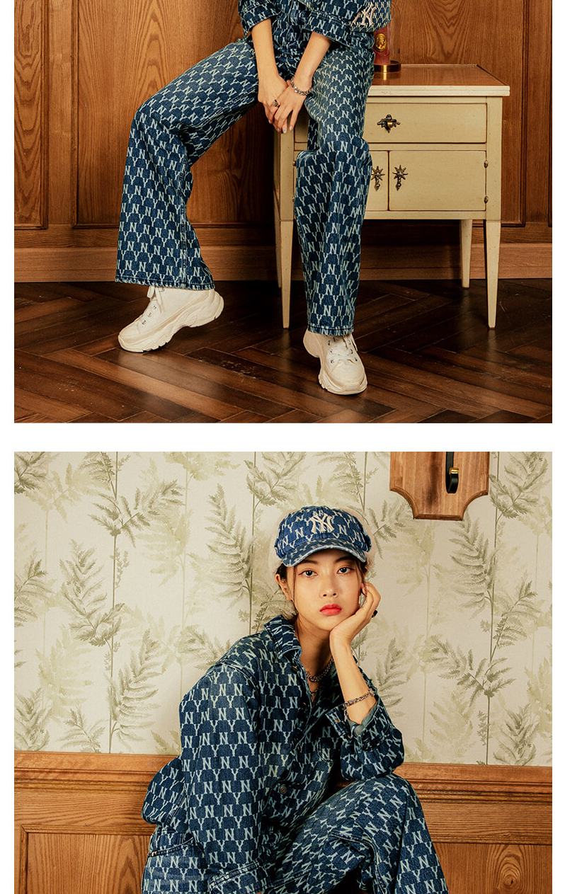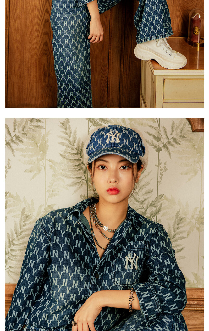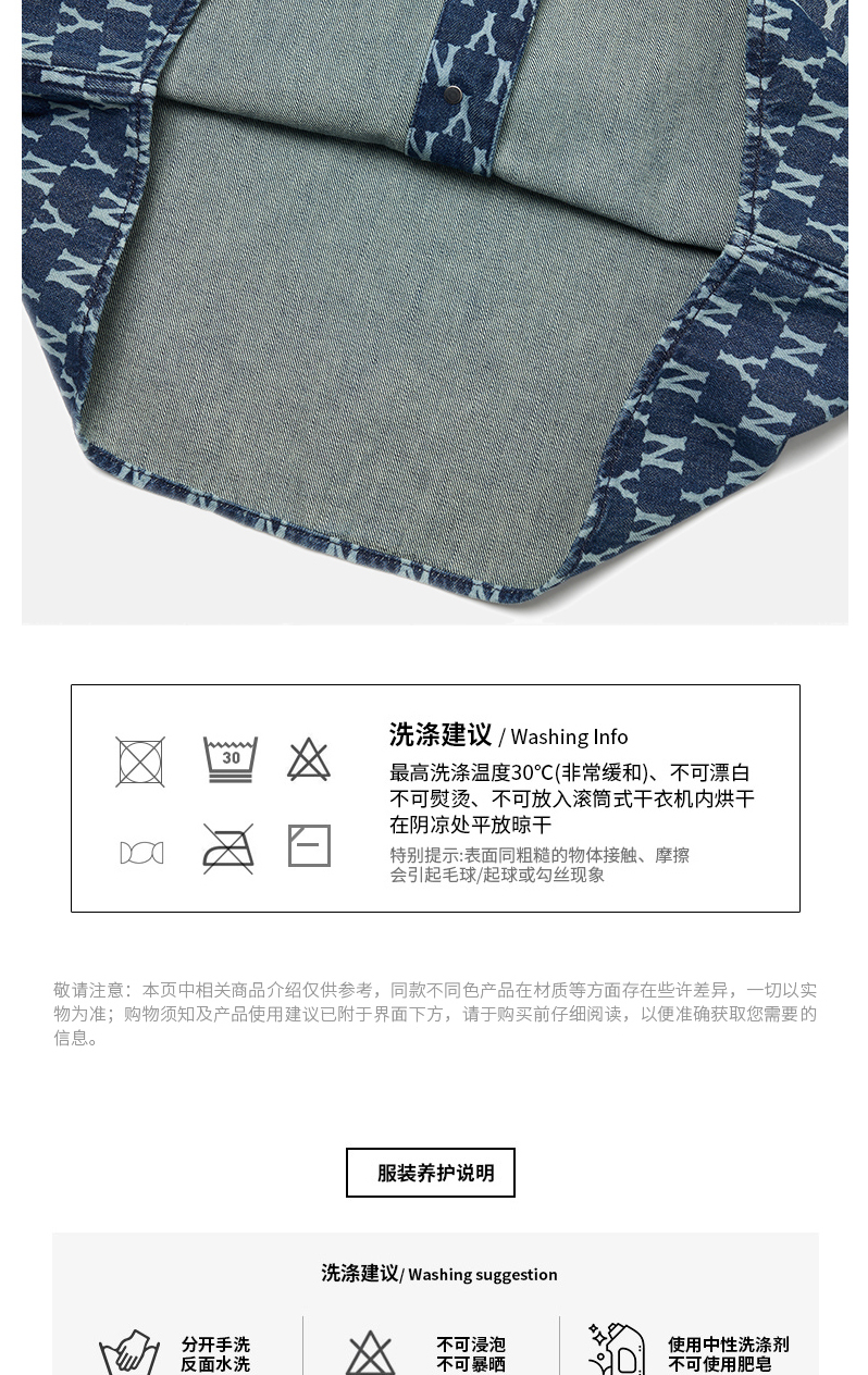 MLB男女衬衫复古老花牛仔休闲情侣防风薄外套春季新款3AWSN3014
