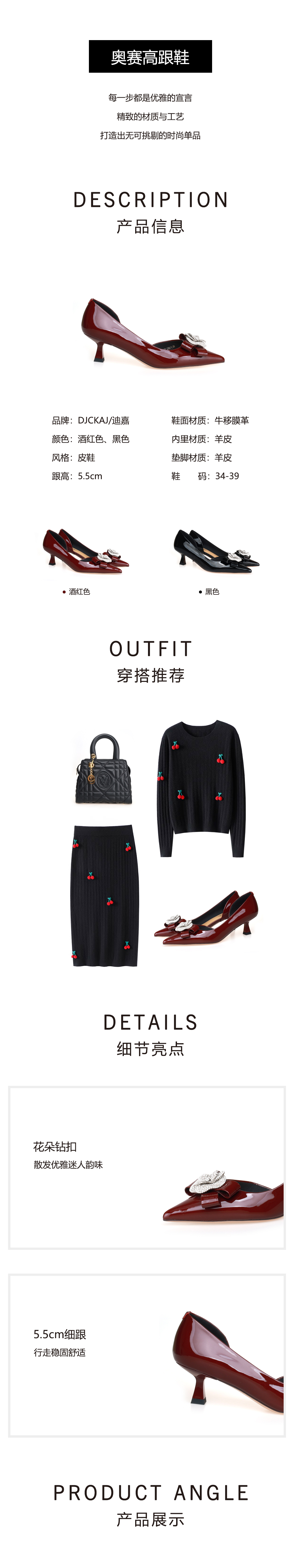 豪麟名鞋奥莱迪嘉女鞋皮鞋DJYYO51WP210酒红色 原价1960元