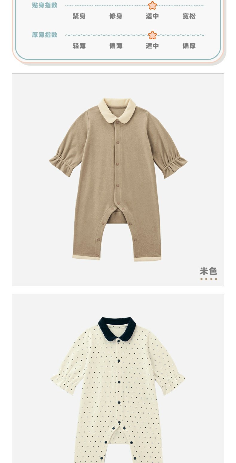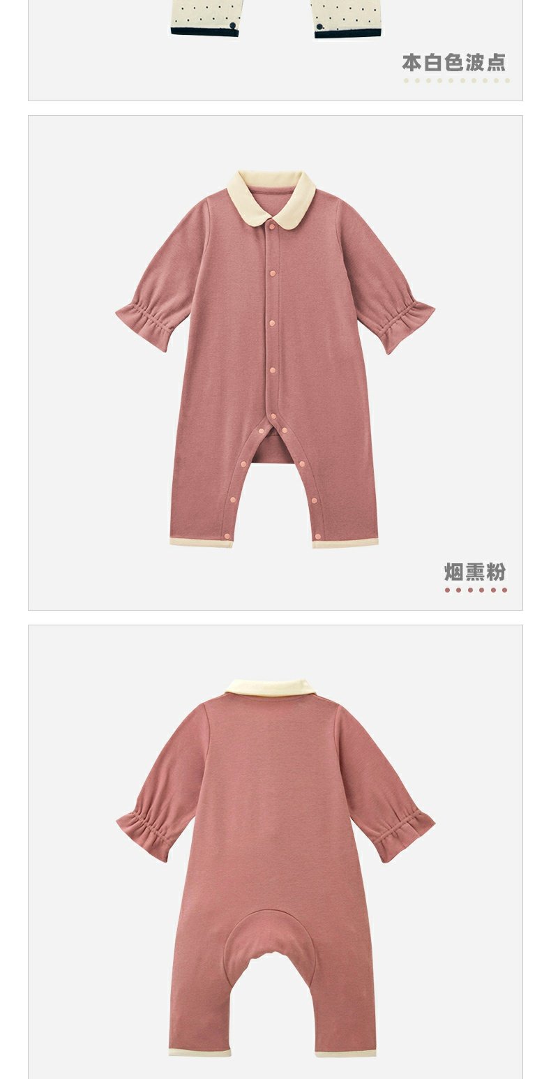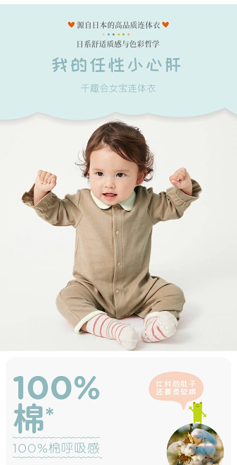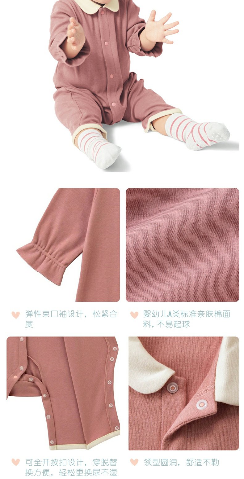 千趣会婴幼儿连身衣服撞色束口袖纯棉宝宝连体衣爬服