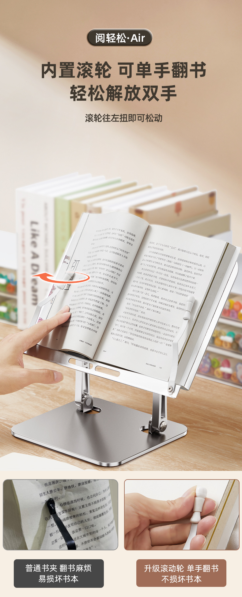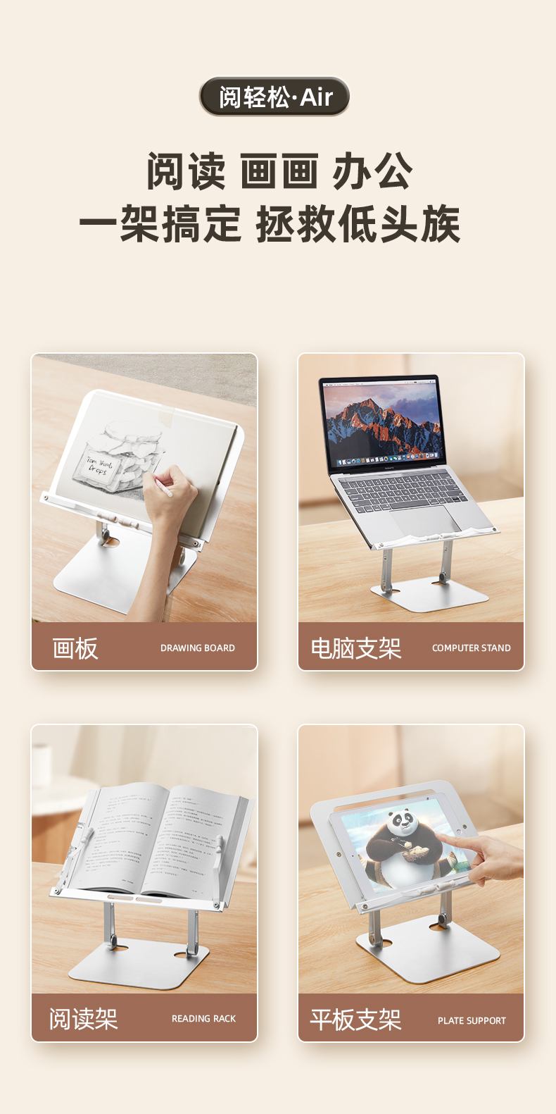 猫太子阅轻松全铝合金阅读架儿童多功能看书神器支架读书架子可调节升降阅读支架小学生桌面夹书固定器书本器