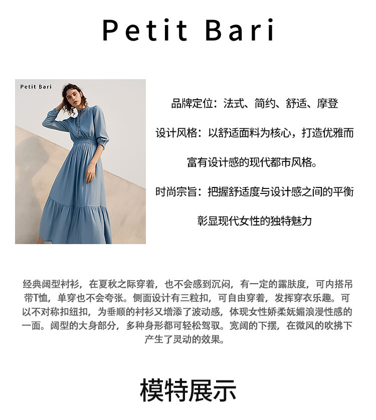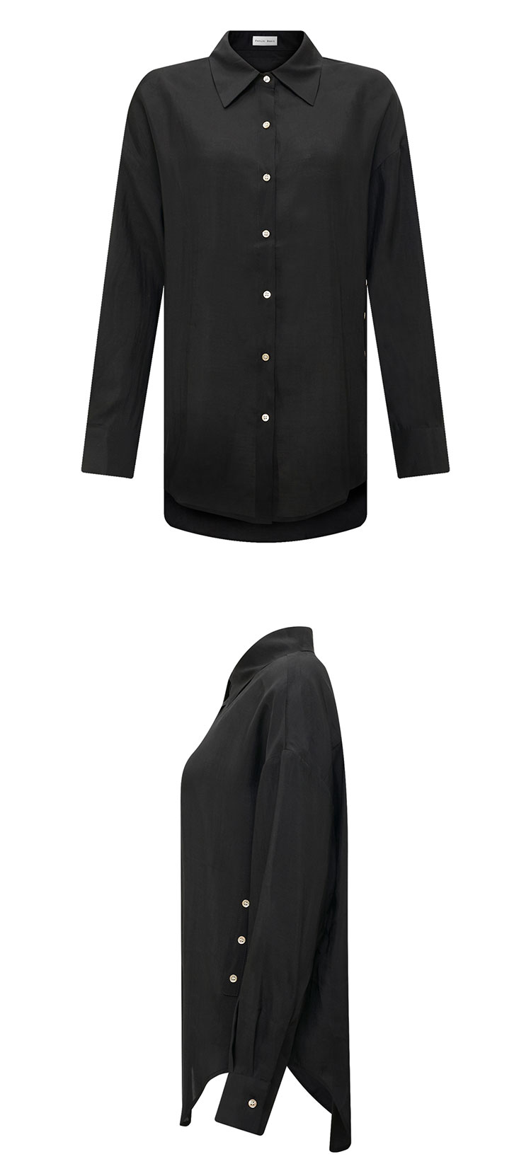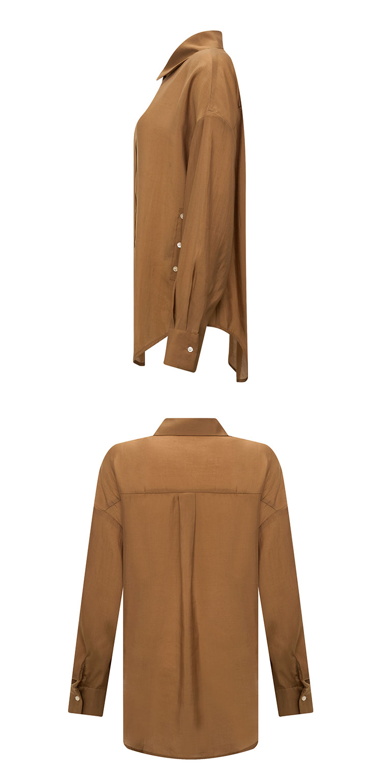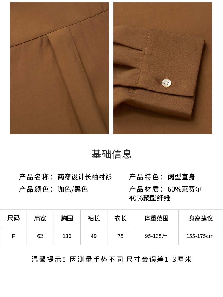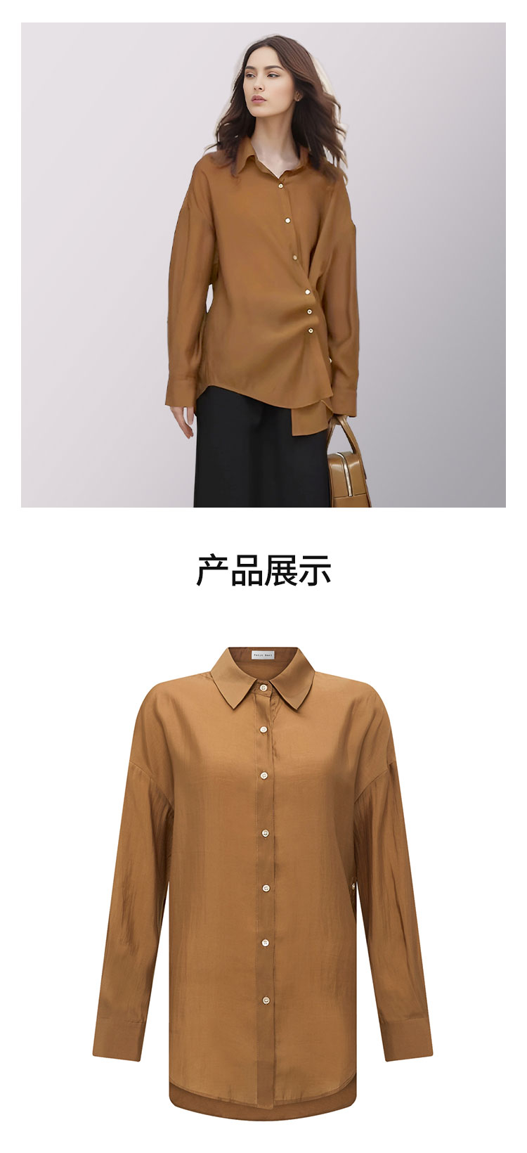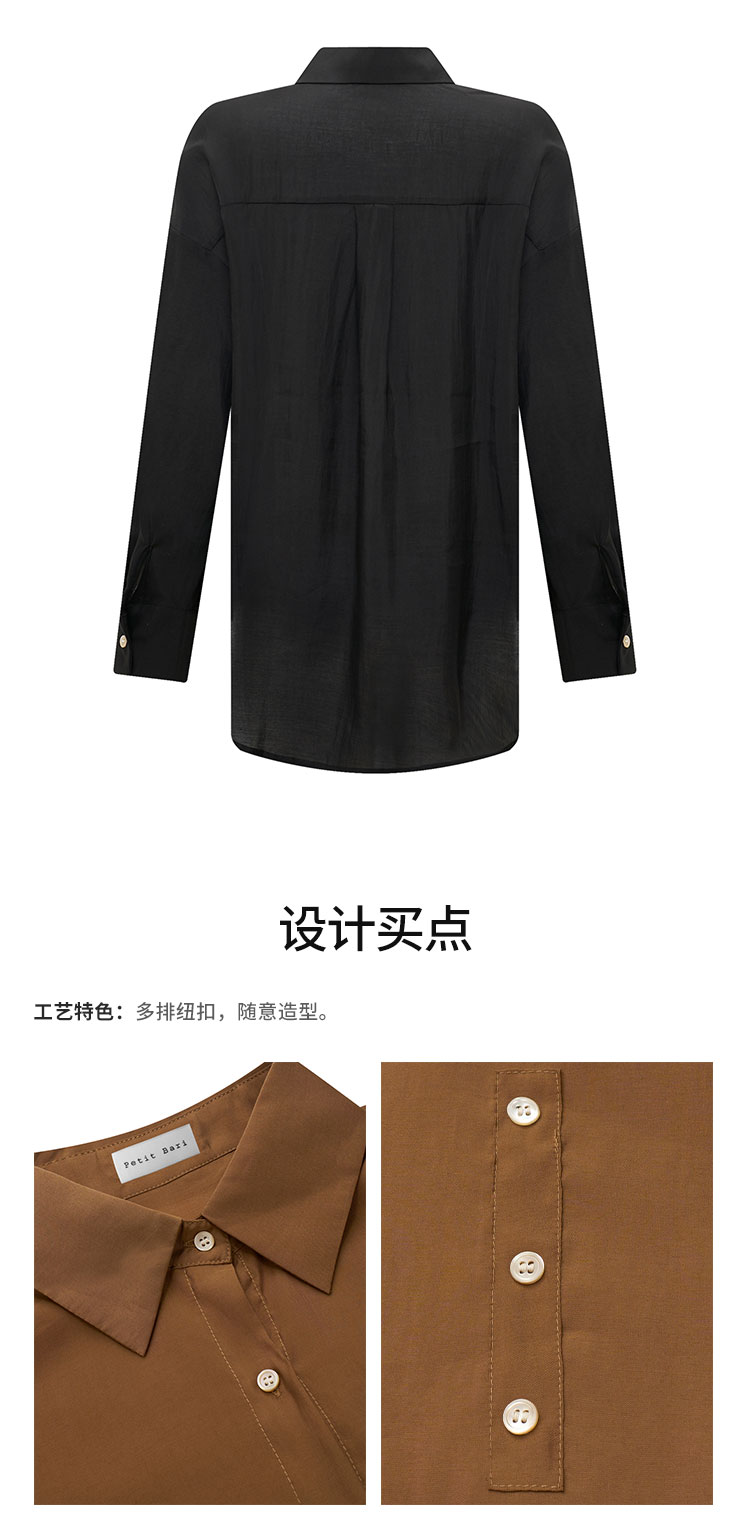 【2件9折】【Petit Bari】(多色)阔型不对称两穿设计长袖天丝衬衫设计感时髦
