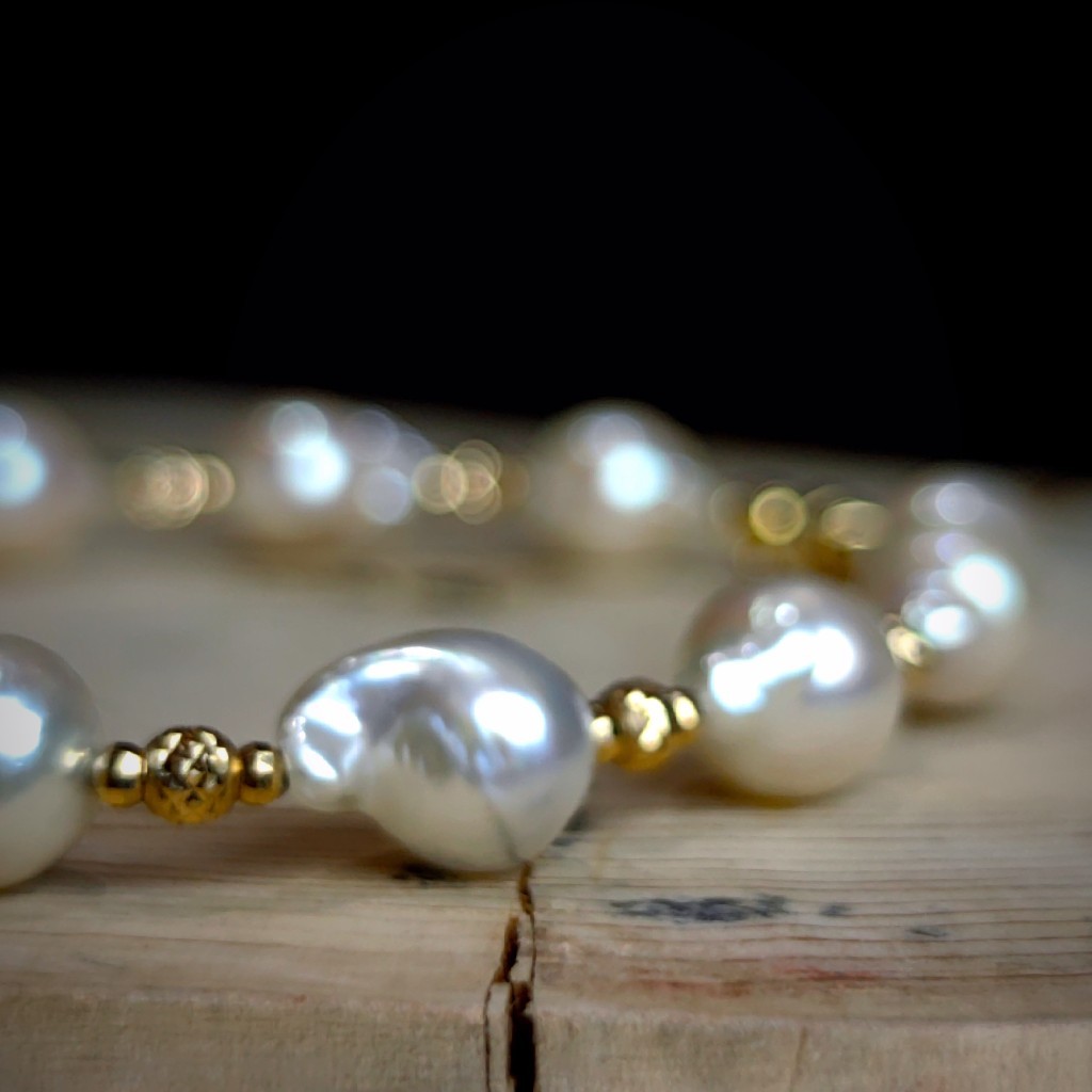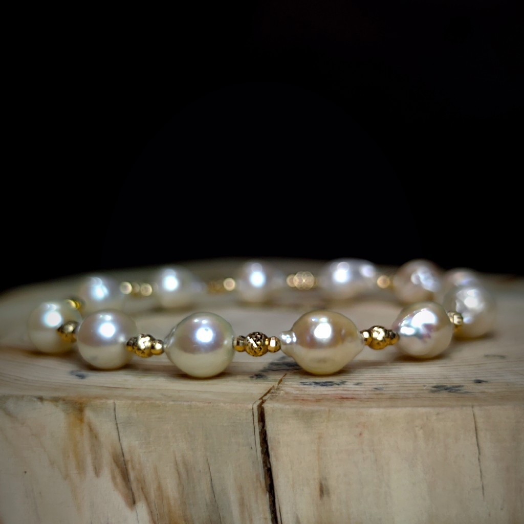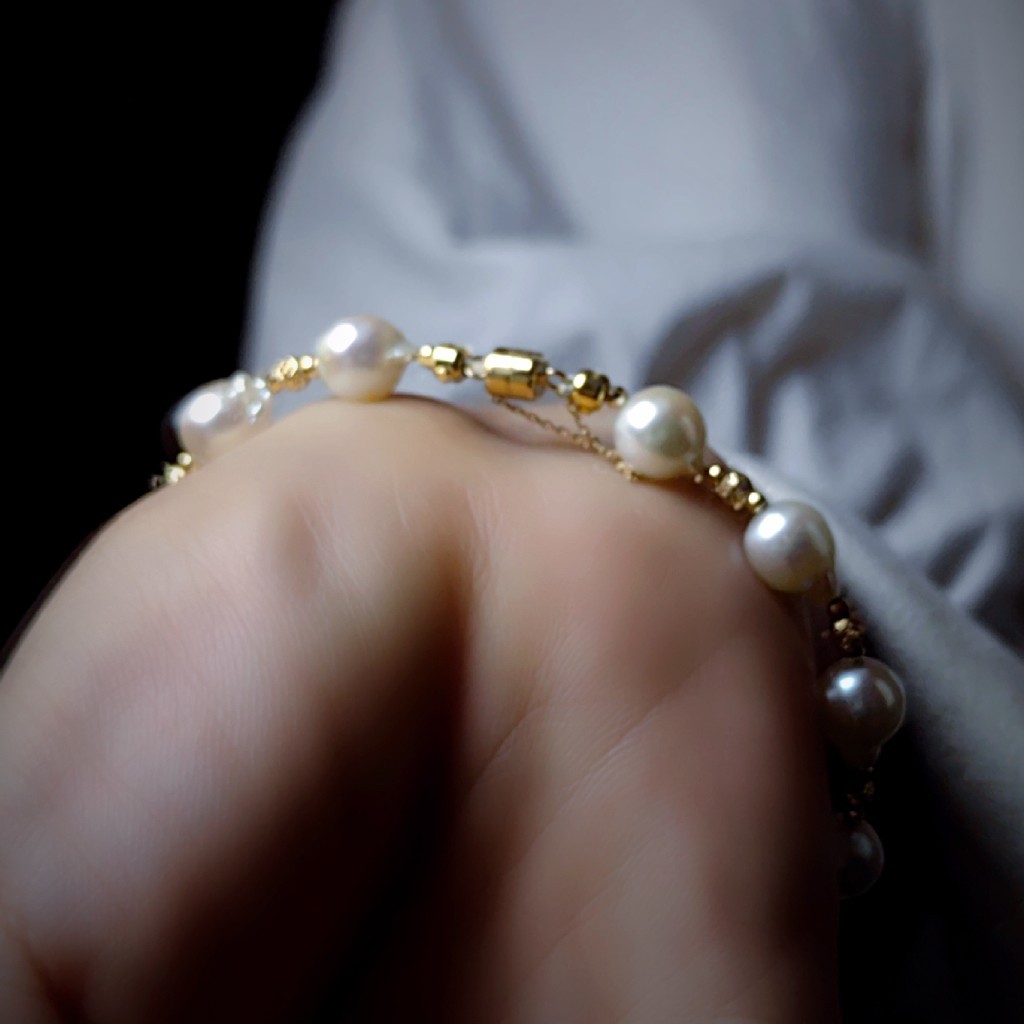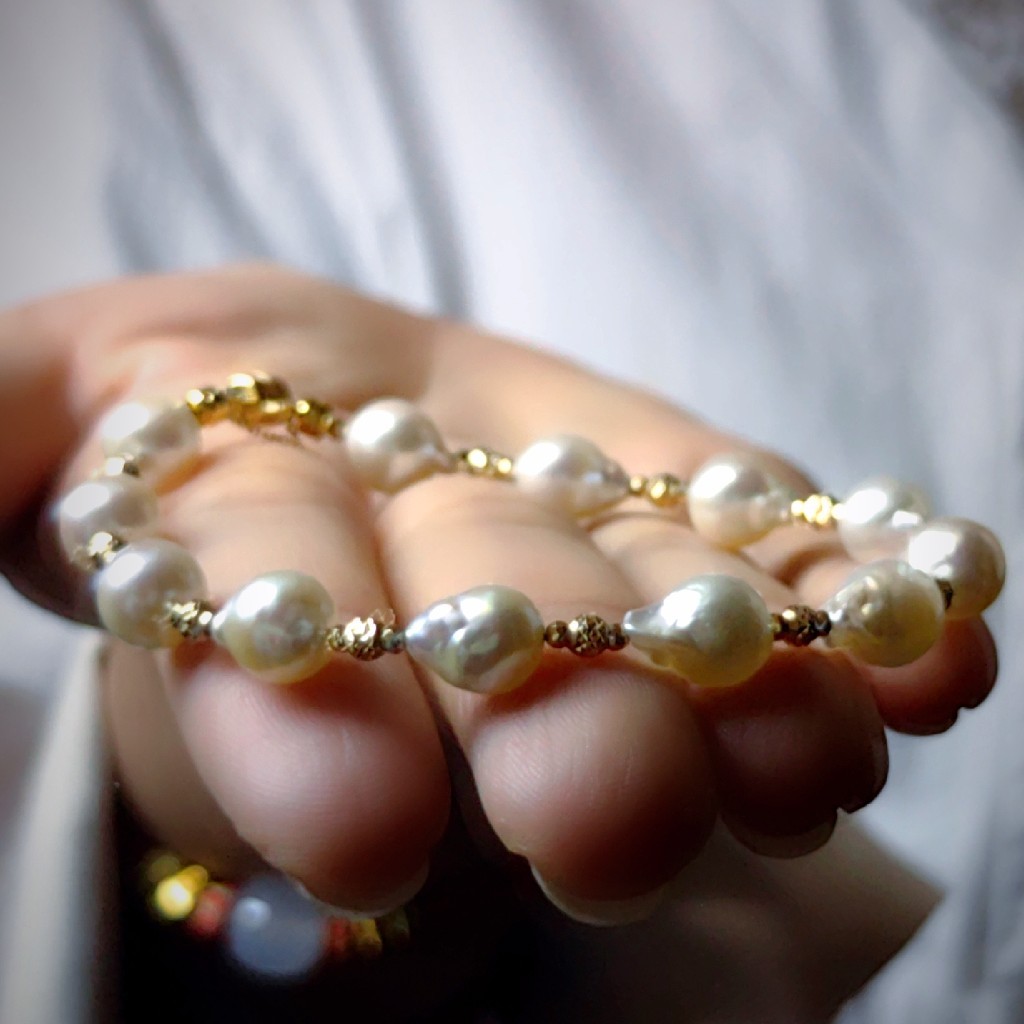 18k金珠子,搭配巴洛克风格的Akoya海水珍珠手链。