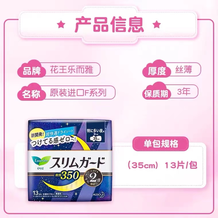 花王 乐而雅卫生巾 S超薄护翼 夜用35cm*13片 原产国:日本
