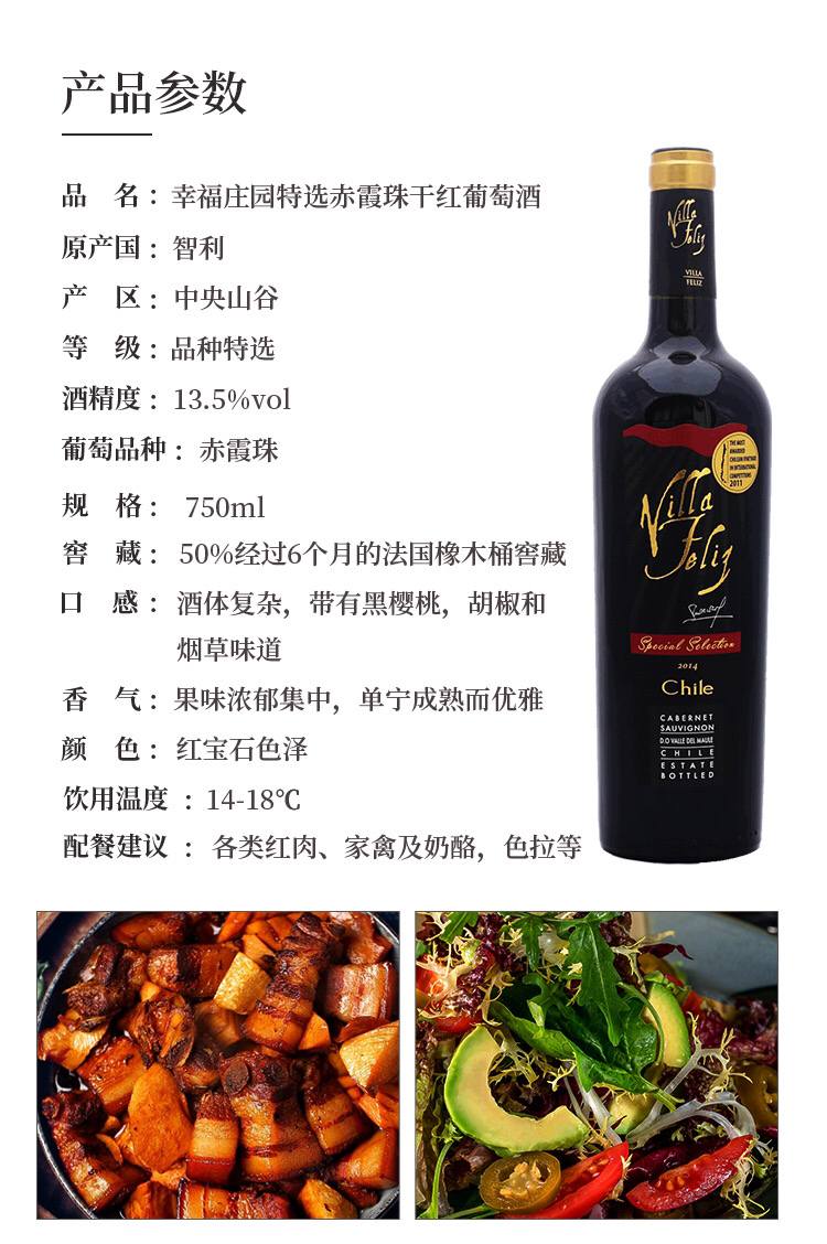 幸福庄园特选赤霞珠干红葡萄酒750ml 2瓶包邮