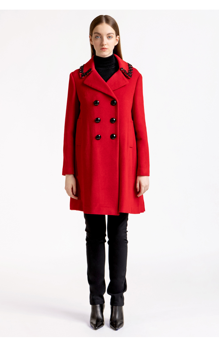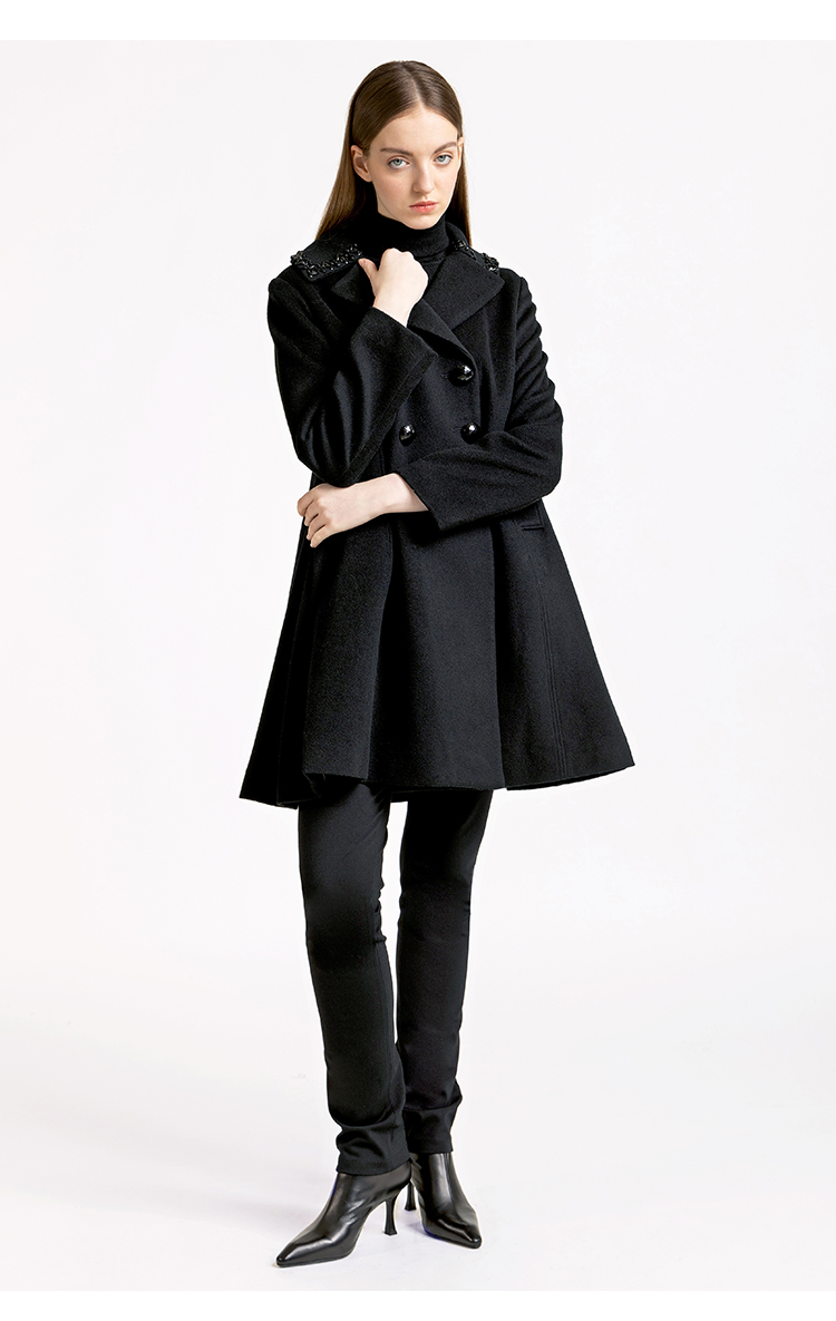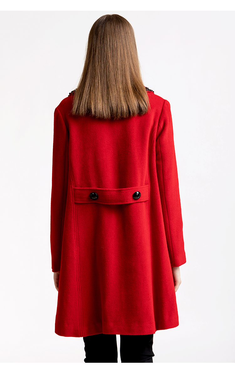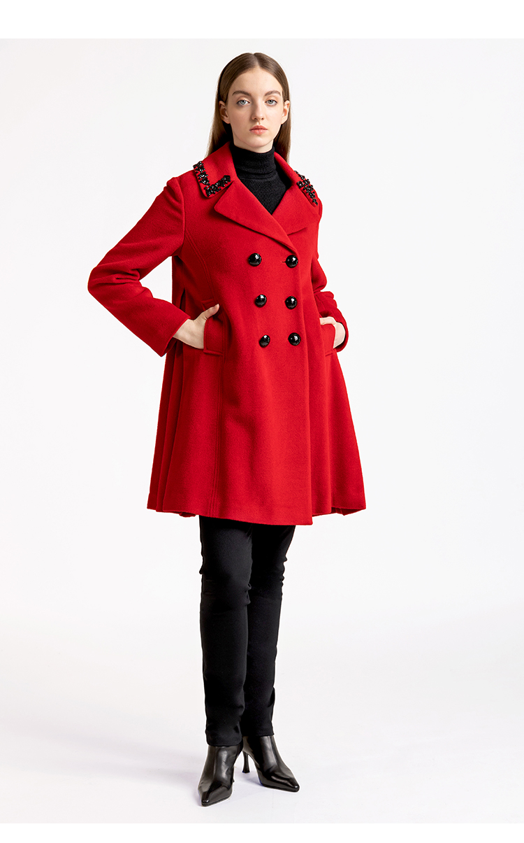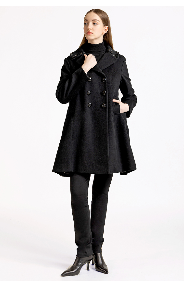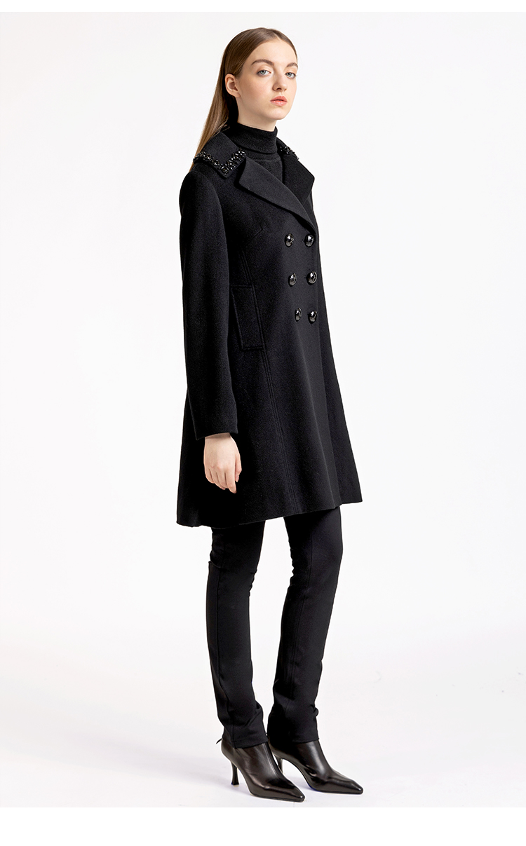 LIZZY优雅手工钉珠双排扣宽松羊毛混纺中长款大衣外套秋冬女3551