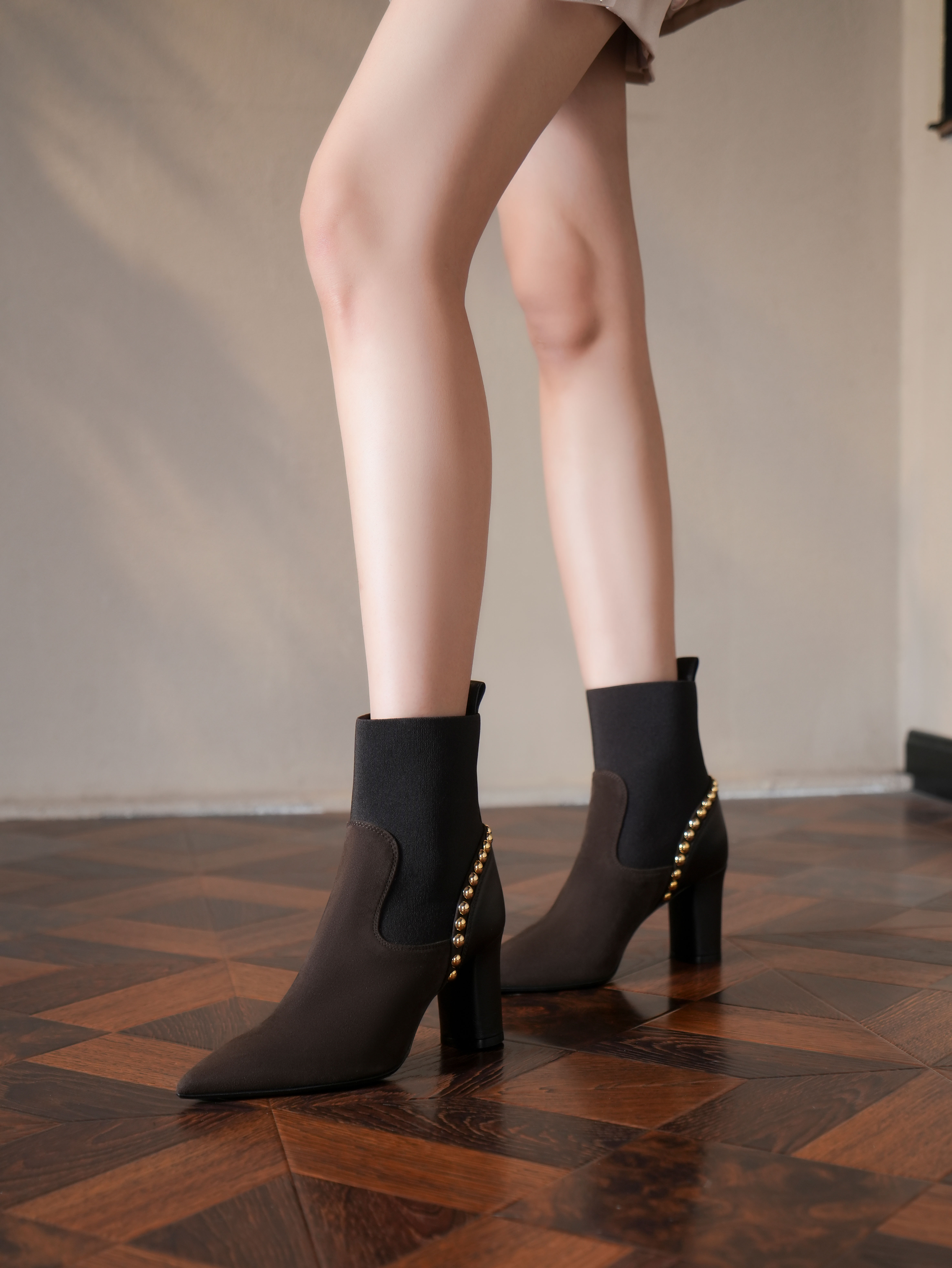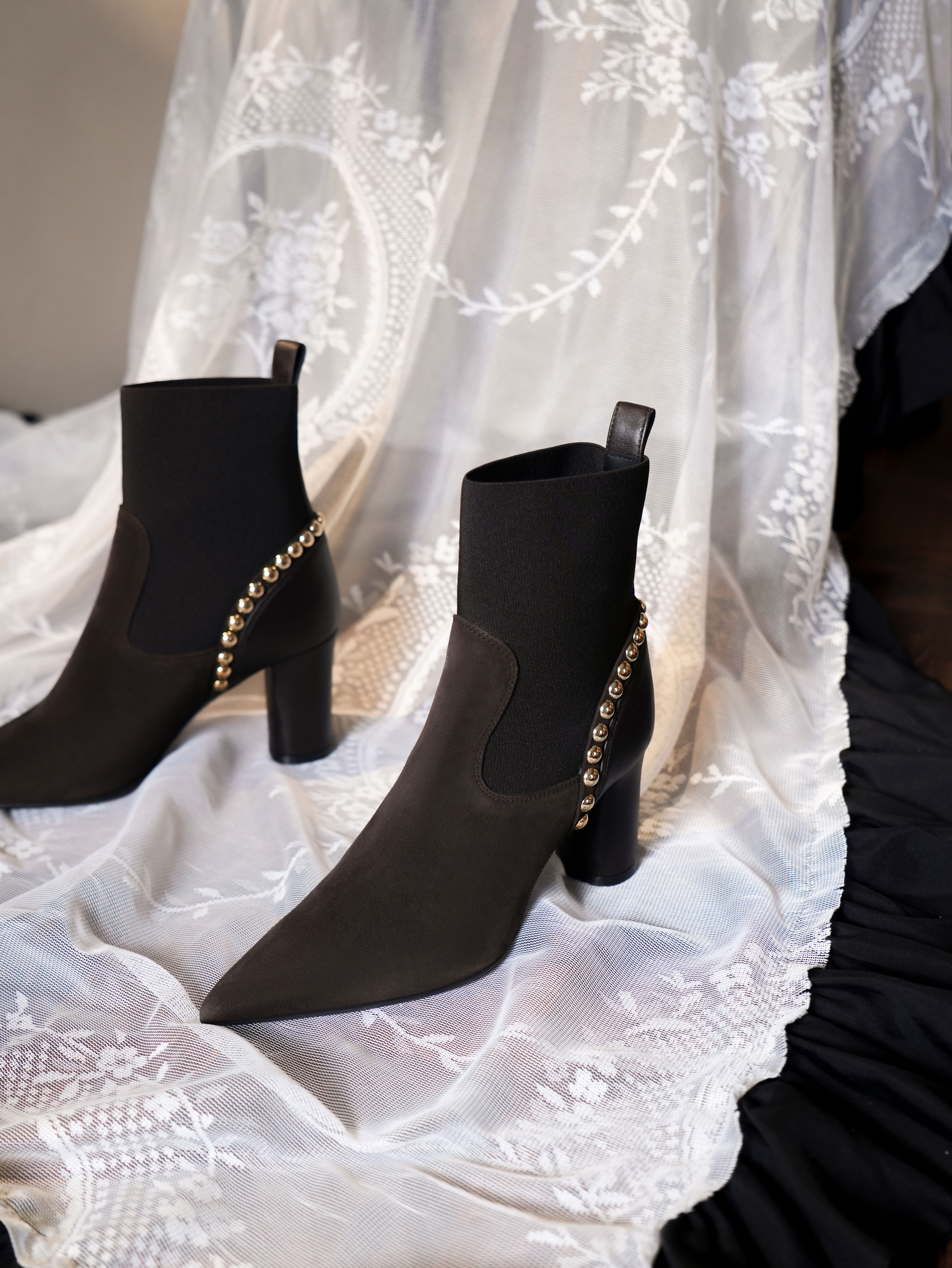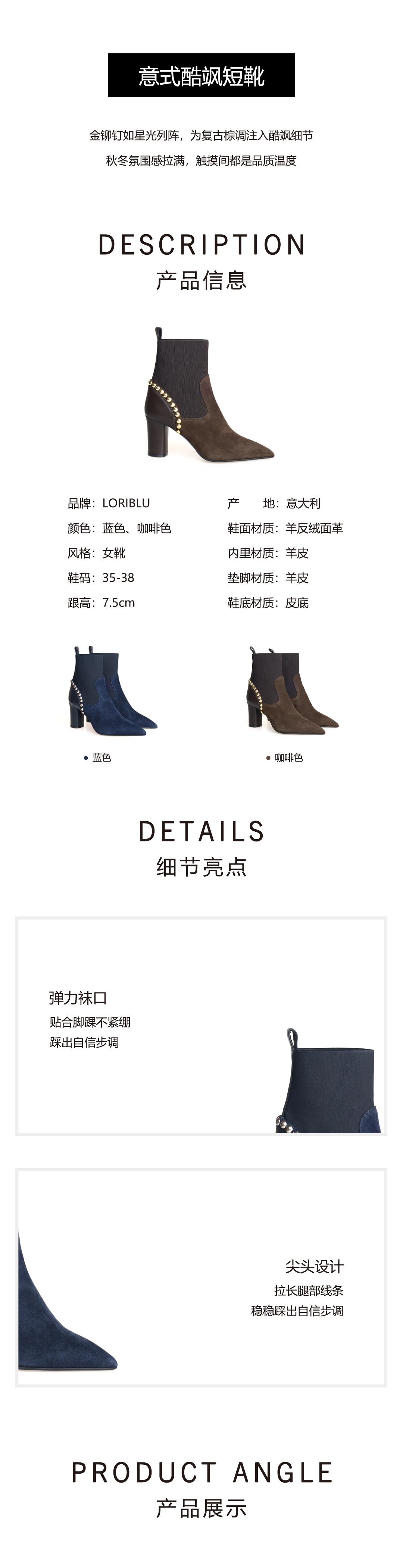 豪麟名鞋LORIBLU女鞋短靴羊反绒面革6AXTT35B咖啡色