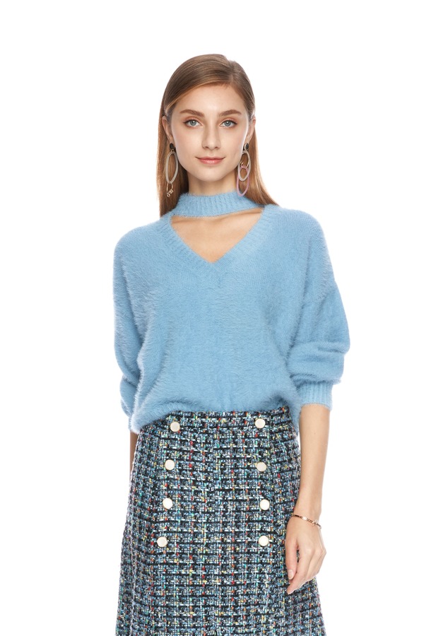 NEW LOOK 蓝色V领挂脖毛衣 4481