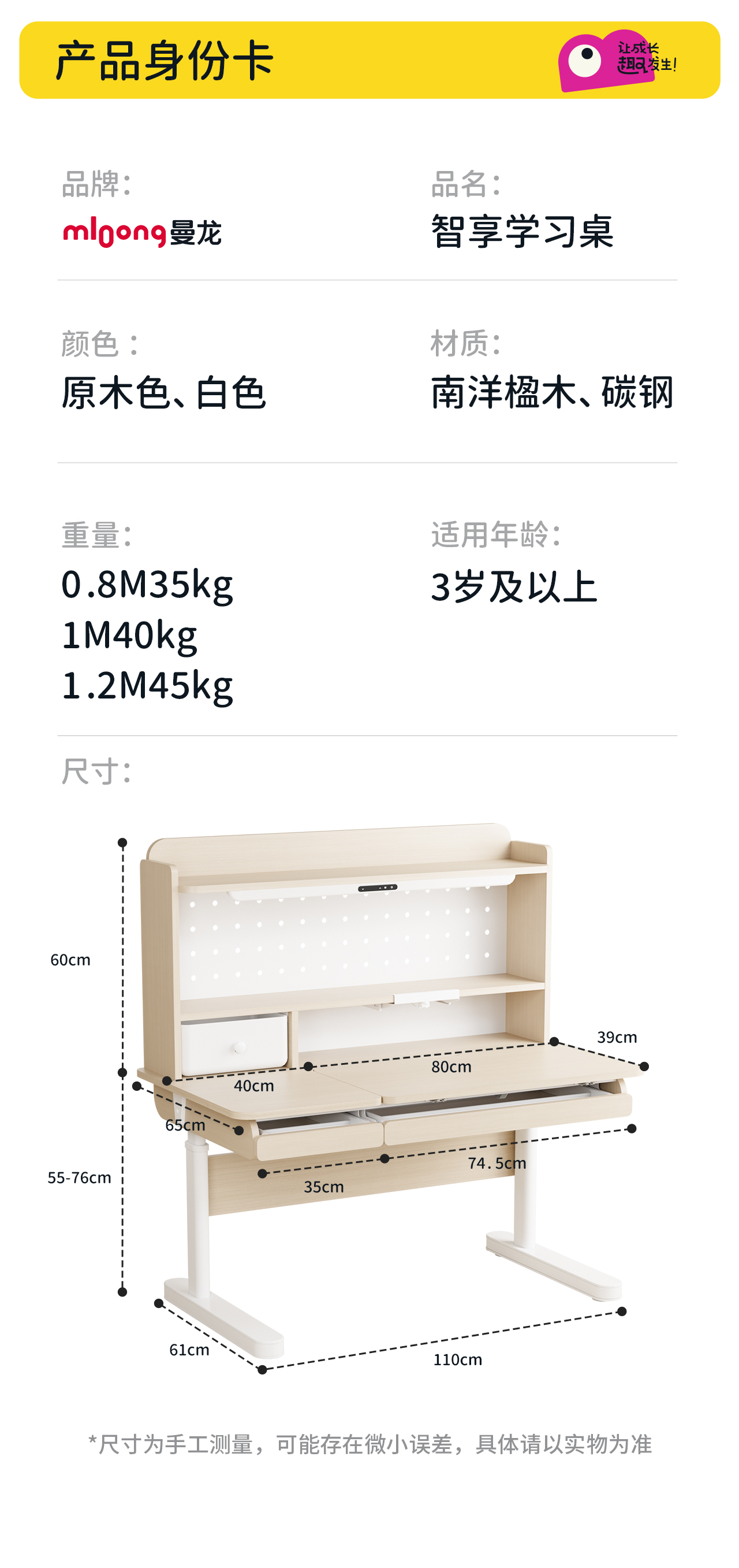 【社群清仓秒杀】曼龙智享学习桌-南洋楹木可升降简约大尺寸书桌儿童书桌椅家用