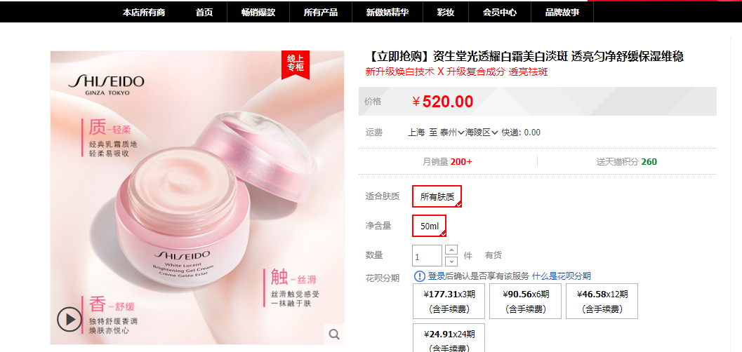 商品名称:资生堂光透耀白凝霜15ml