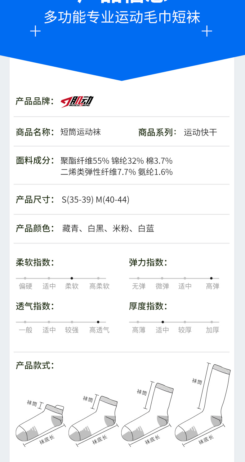肌动805马拉松专业运动短袜毛巾底防滑跑步袜男女短筒速干篮球训练袜