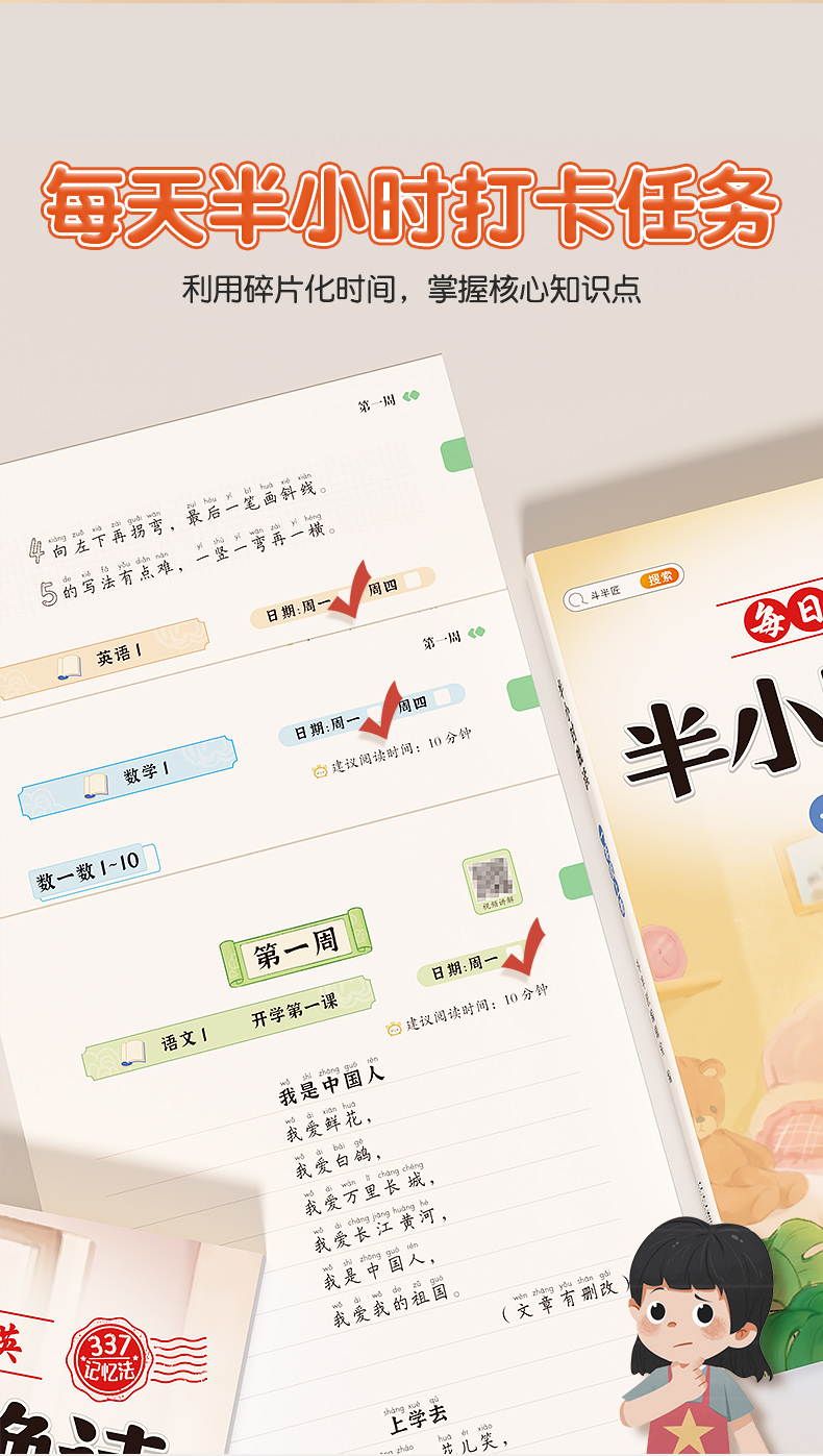 【斗半匠】小学1-6年级每日语数英半小时晚读