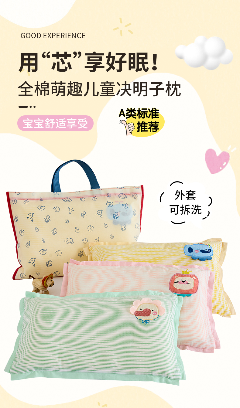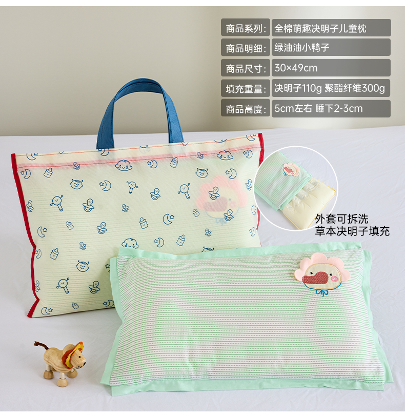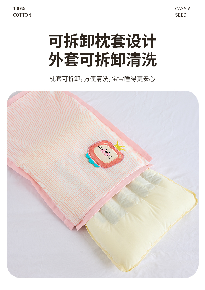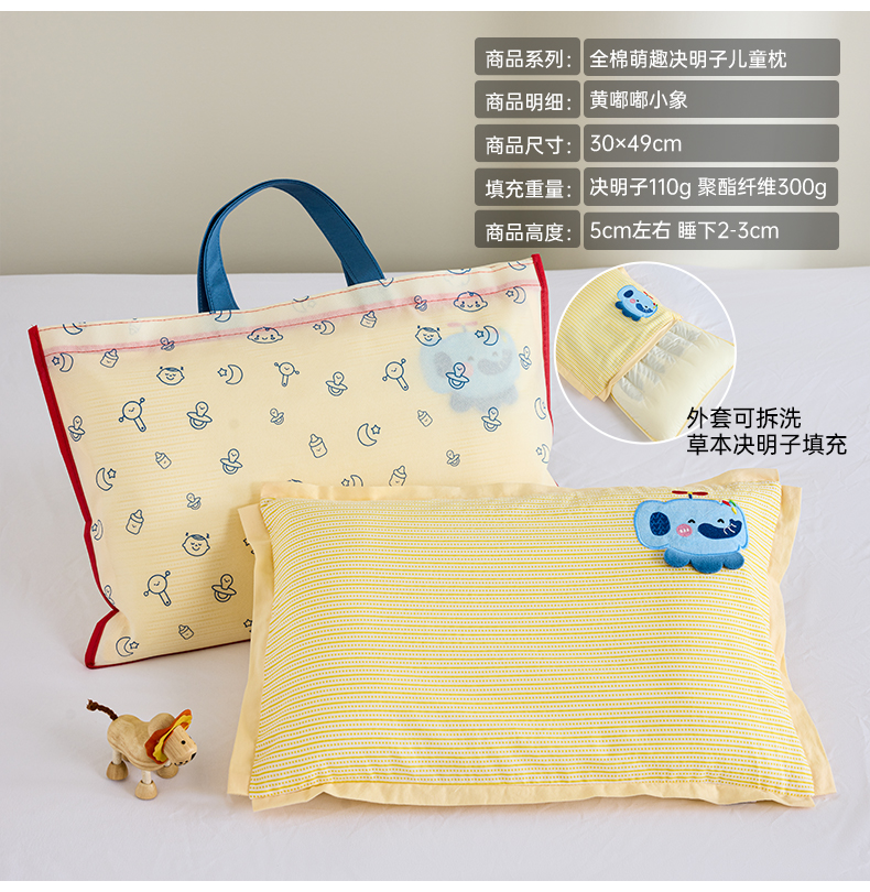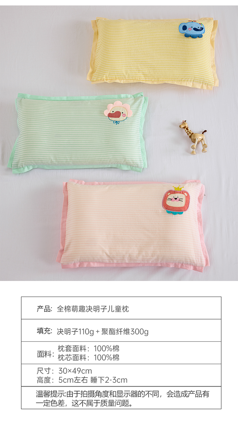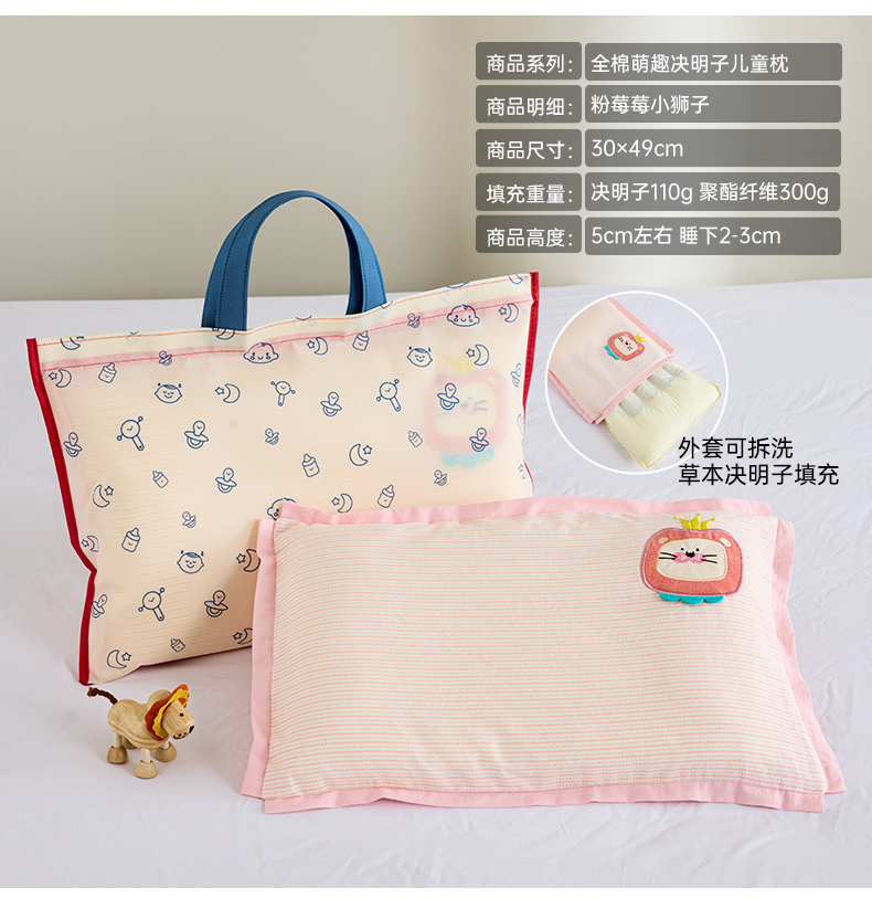 自然醒全棉萌趣决明子儿童枕(赠手提礼袋)3到6岁幼儿园宝宝小枕头学生护颈椎枕芯四季通用XK