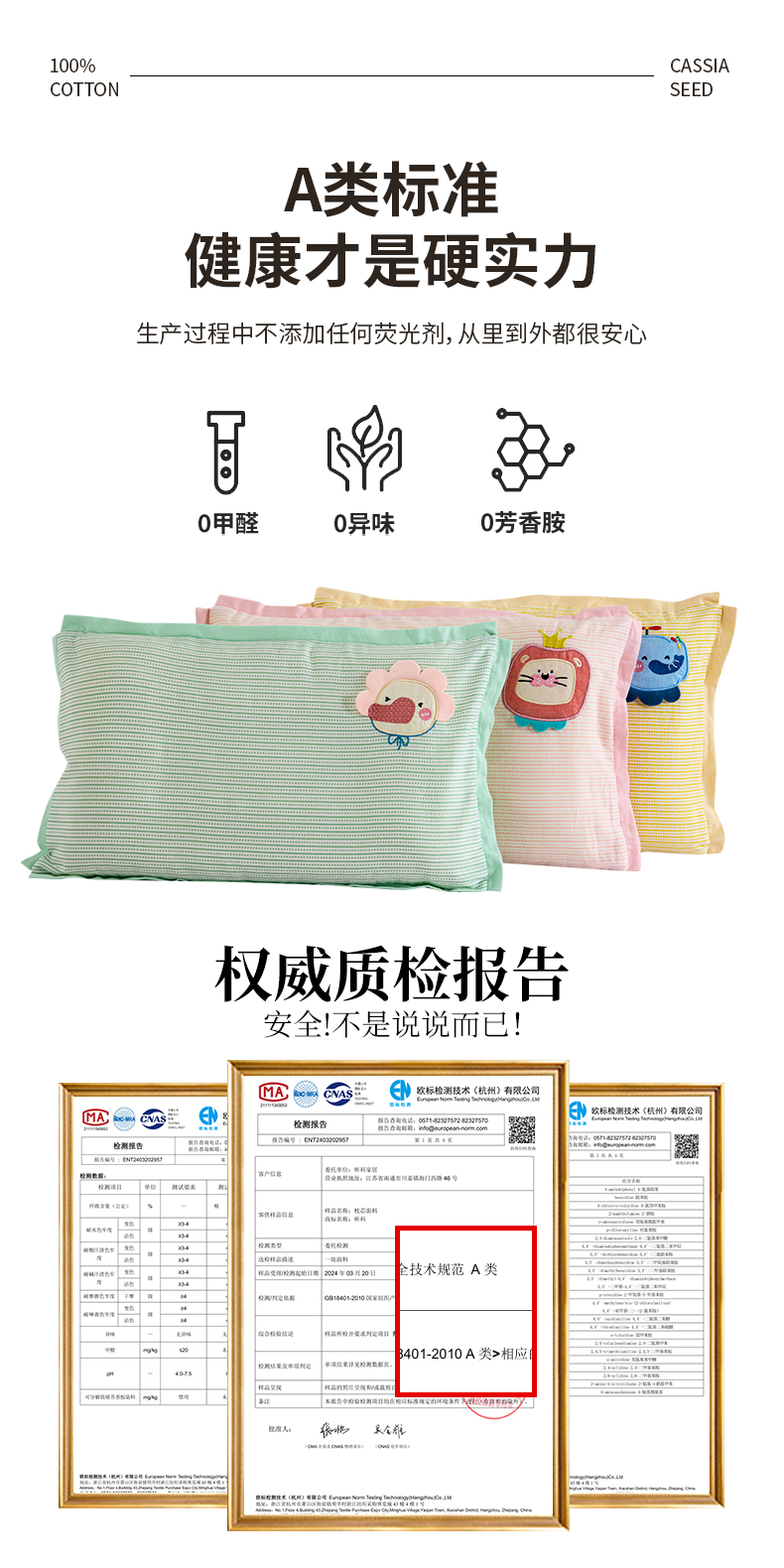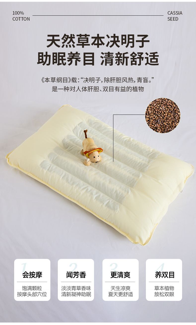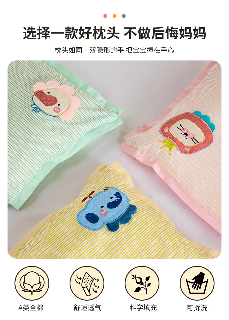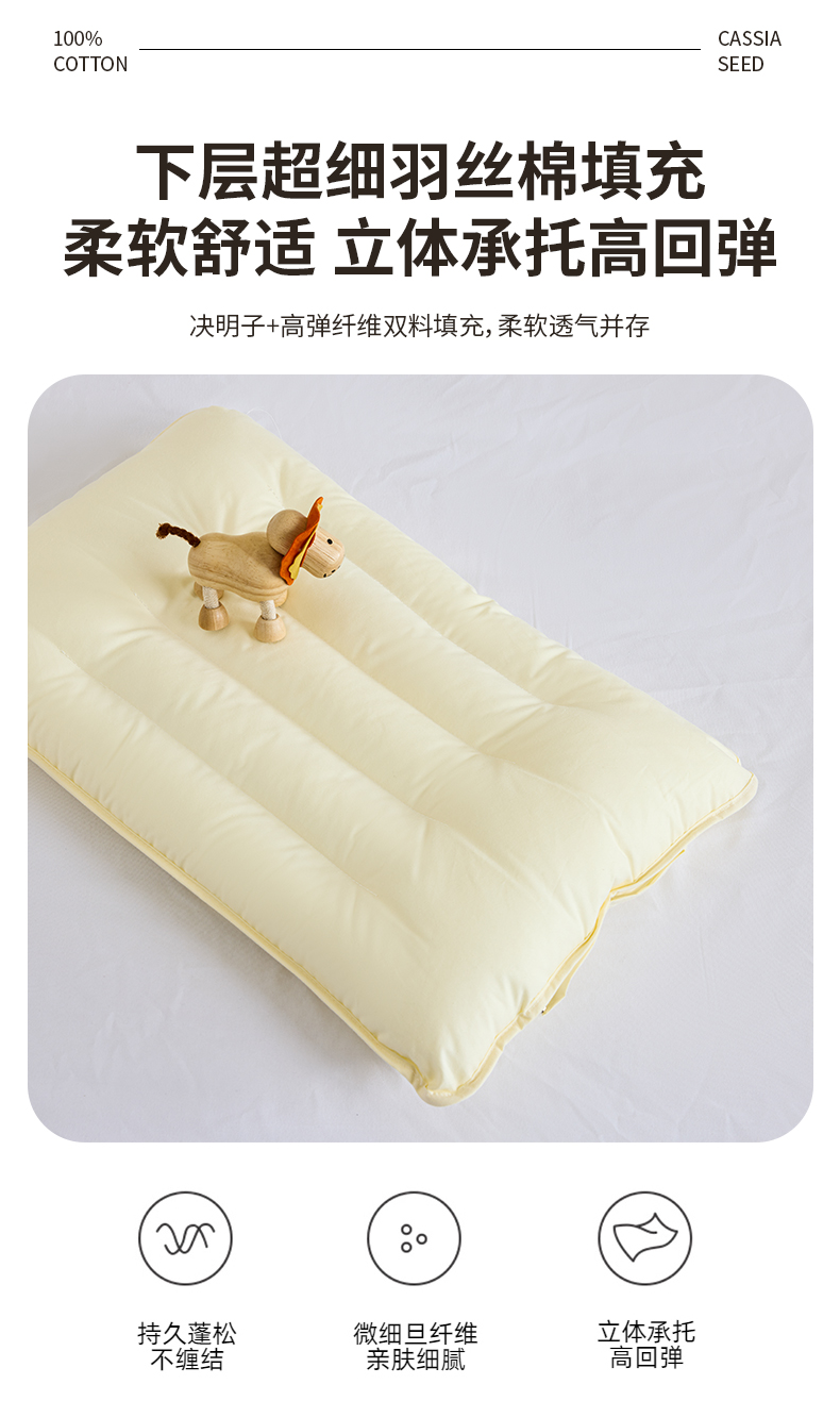 自然醒全棉萌趣决明子儿童枕(赠手提礼袋)3到6岁幼儿园宝宝小枕头学生护颈椎枕芯四季通用XK