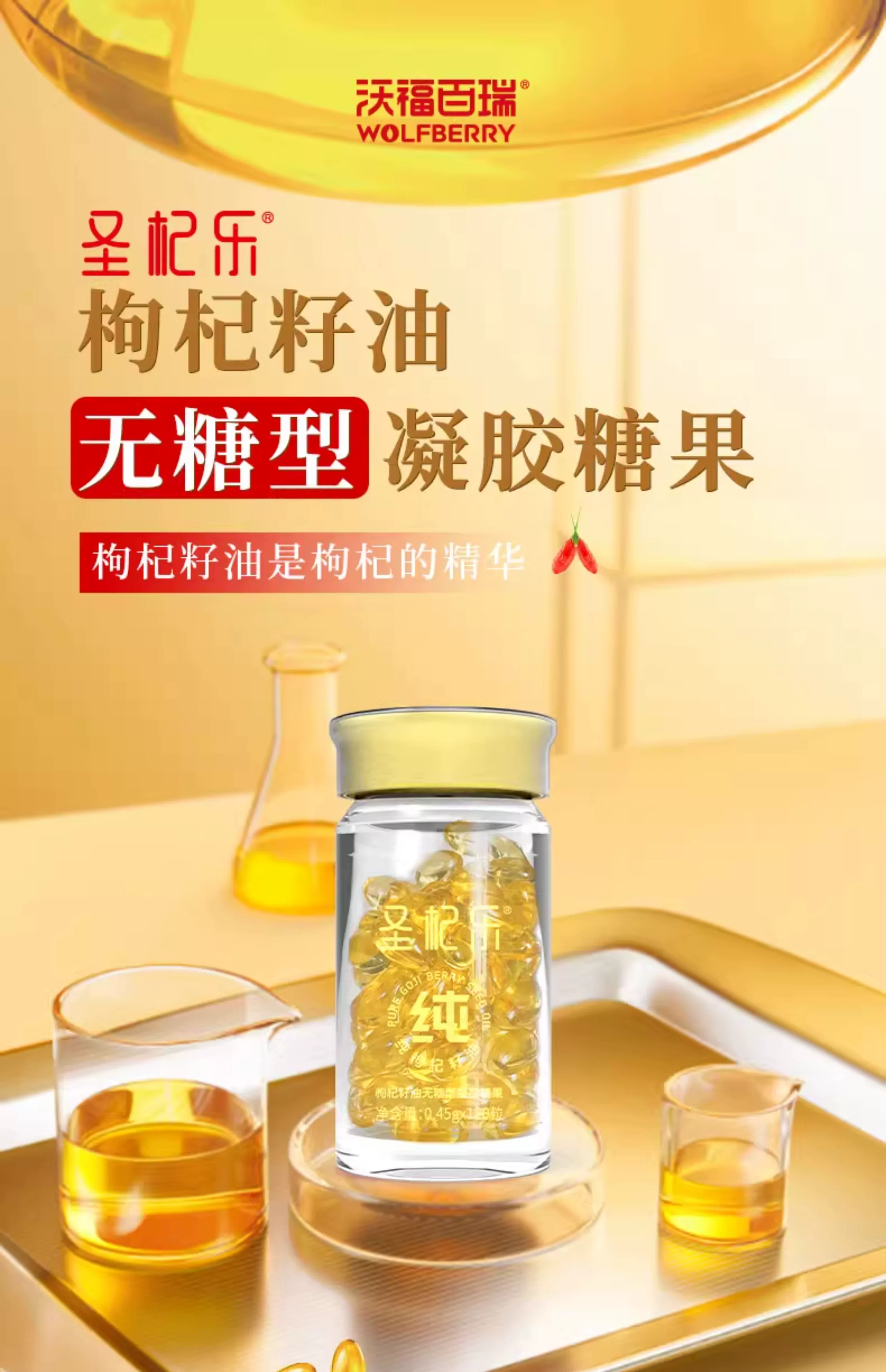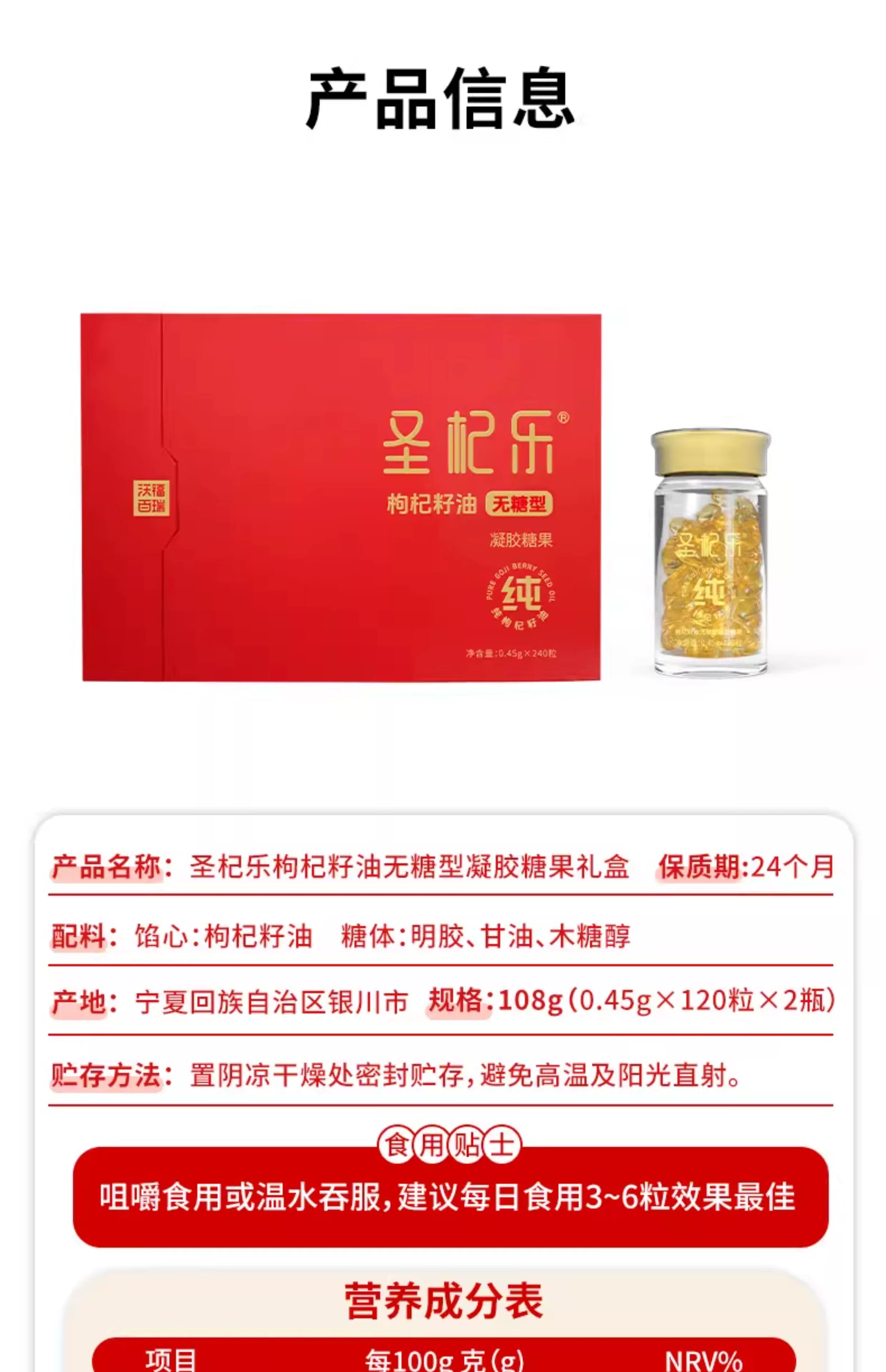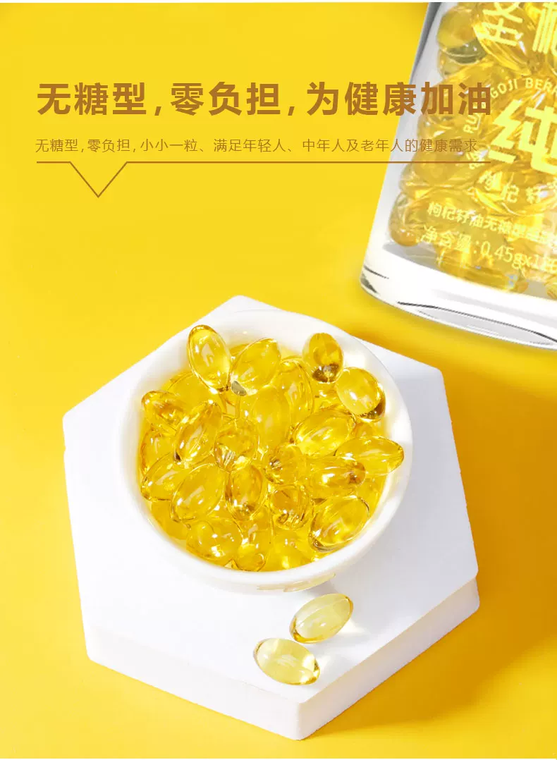 沃福百瑞圣杞乐枸杞籽油无糖型凝胶糖果枸杞籽油胶囊油胶丸