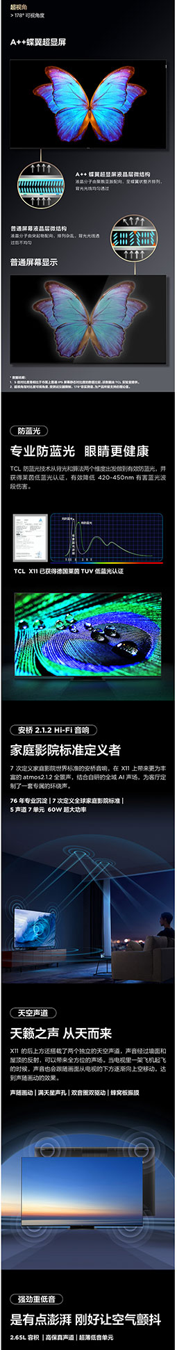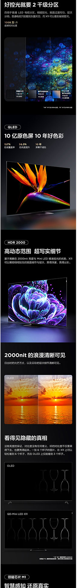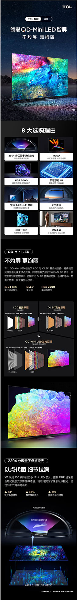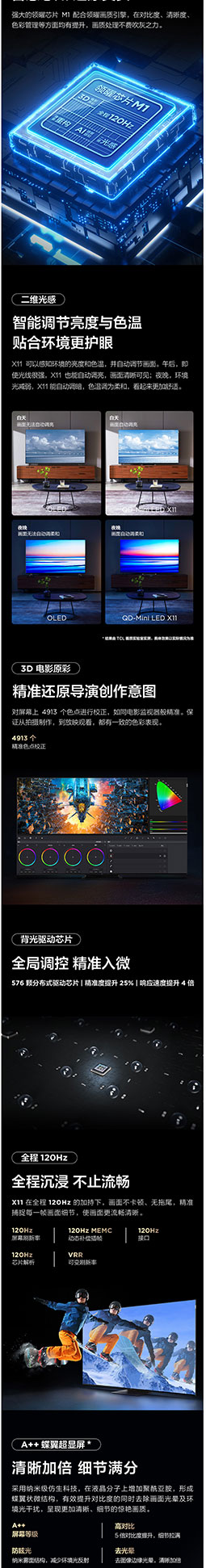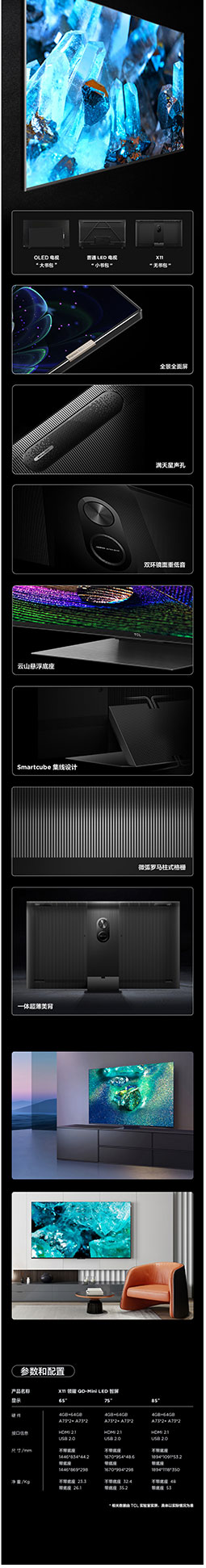 TCL电视 85X11 85英寸 QD-mini LED智能4K超清电视 AI声控智屏 标配摄像头 超薄全面屏 4+64GB液晶平板电视机
