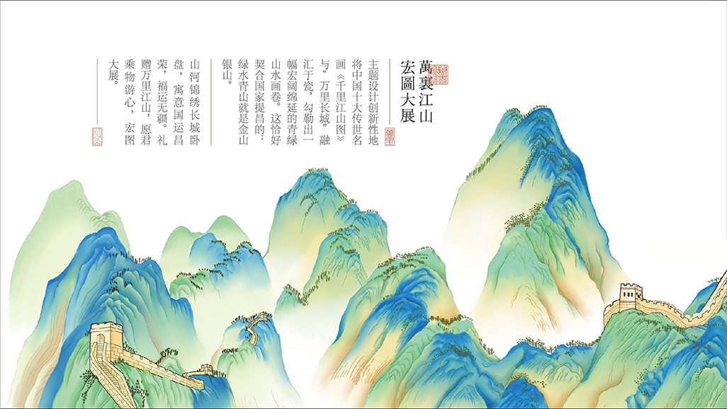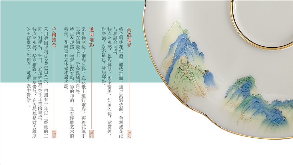 千里江山 6头+木托盘 茶具套装 手绘羊脂玉新款整套功夫茶具家用德化白瓷客厅泡茶办公室会客盖碗茶杯 茶道 茶具
