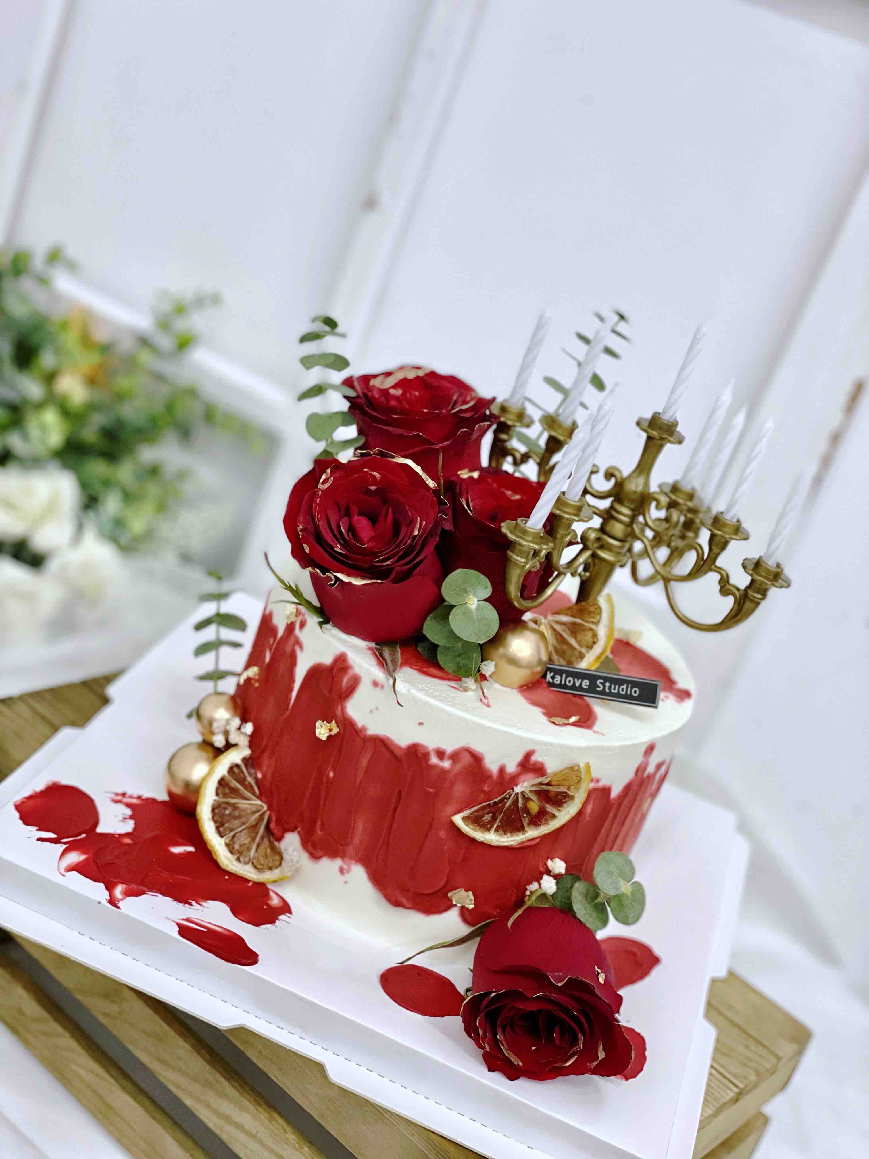 玫瑰烛台浪漫周年纪念生日蛋糕