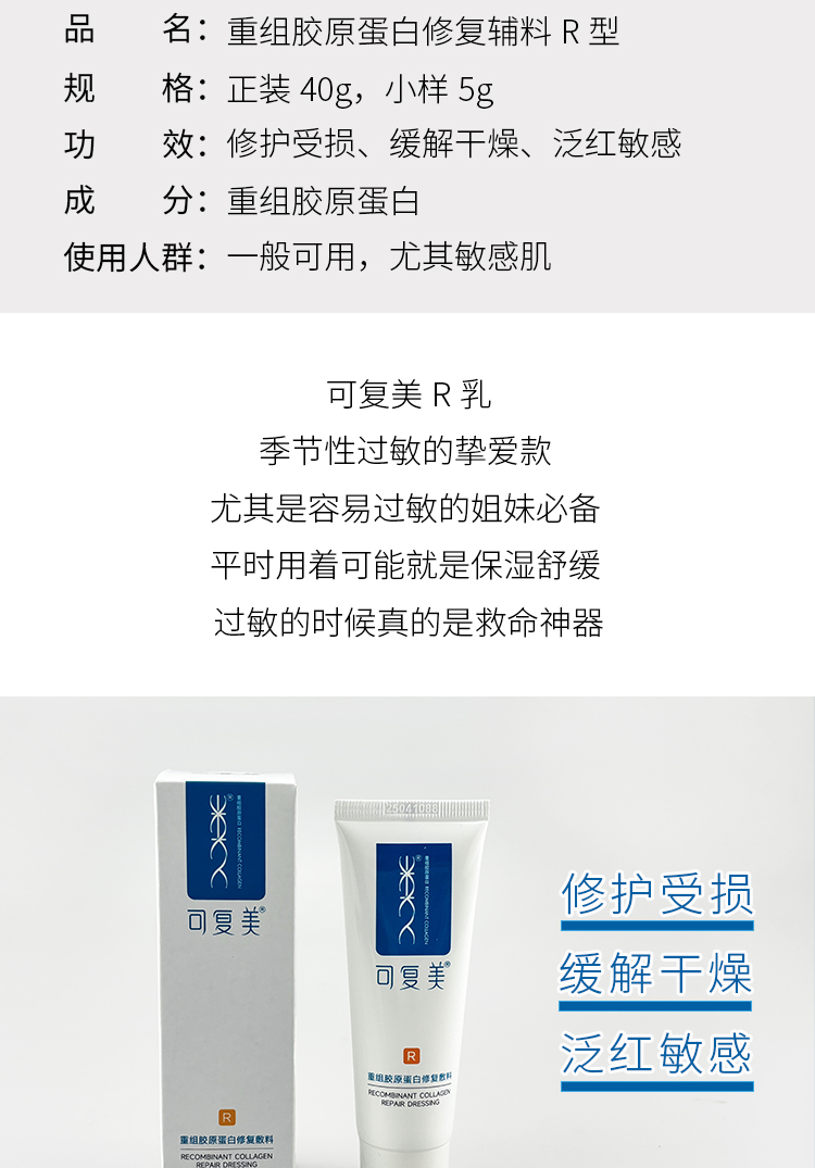 可复美重组胶原蛋白修复辅料R型乳*40g /5g
