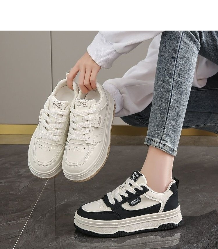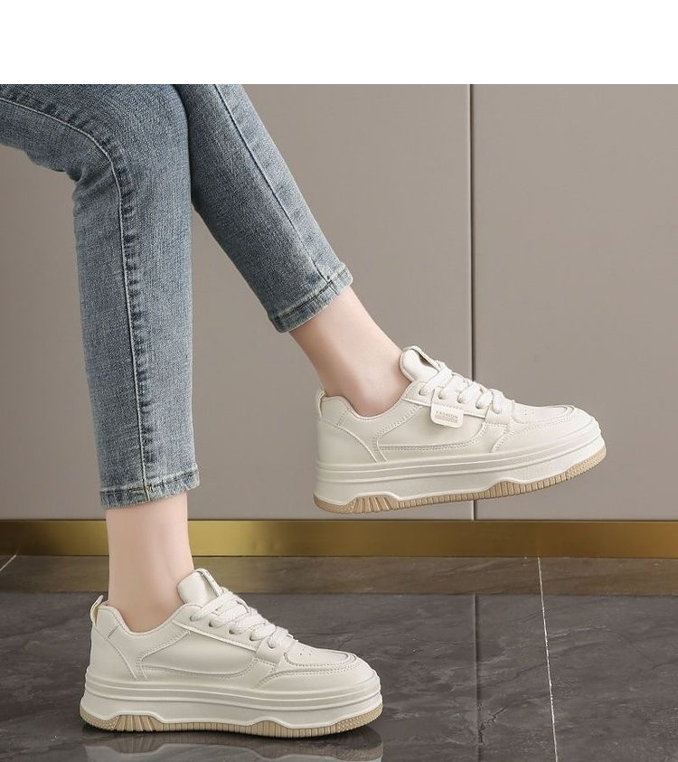 西遇面包小白鞋女新款秋季韩系百搭白色系带休闲鞋子厚底板鞋K0057156
