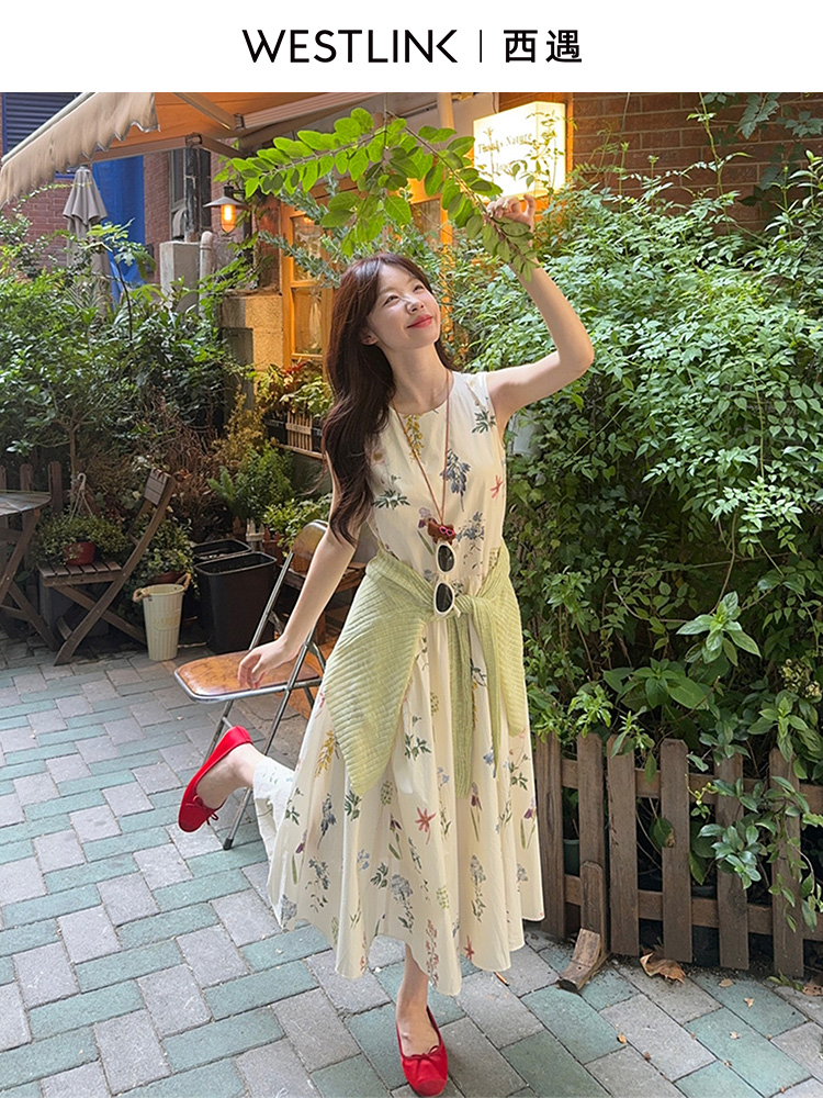 西遇夏季碎花背心裙套装SS150328(针织SS150327)