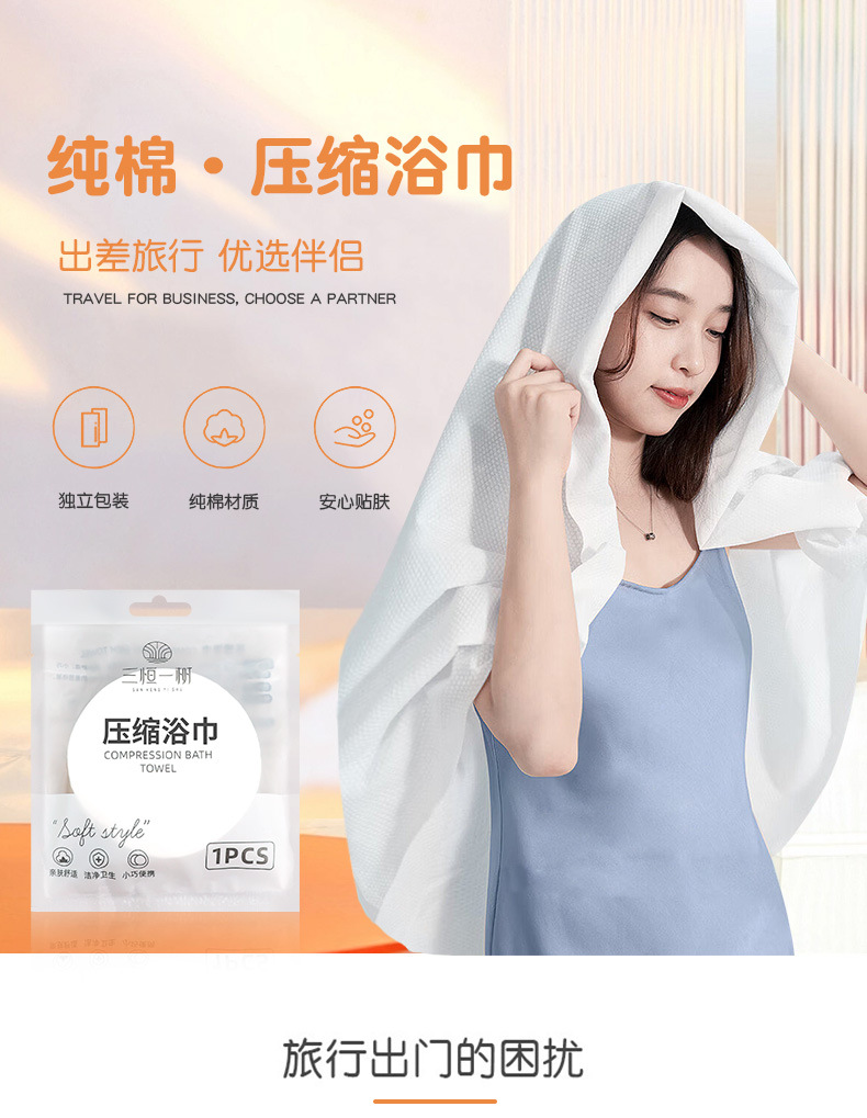 一次性浴巾毛巾旅行单独包装压缩非纯棉加厚加大旅游宾馆酒店用品