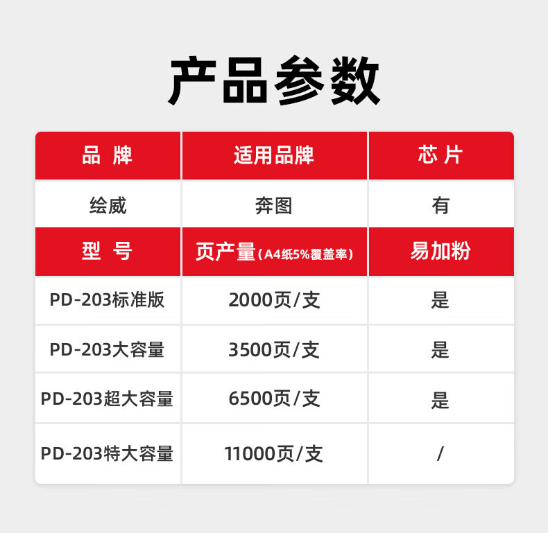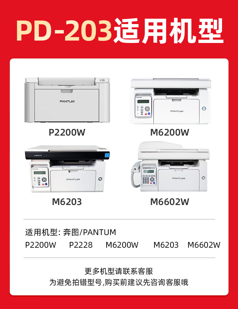 绘威奔图M6200w硒鼓p2200w pd203t碳粉盒m6203 pantum打印机墨盒M6602W p2228奔图pd-203易加粉硒鼓