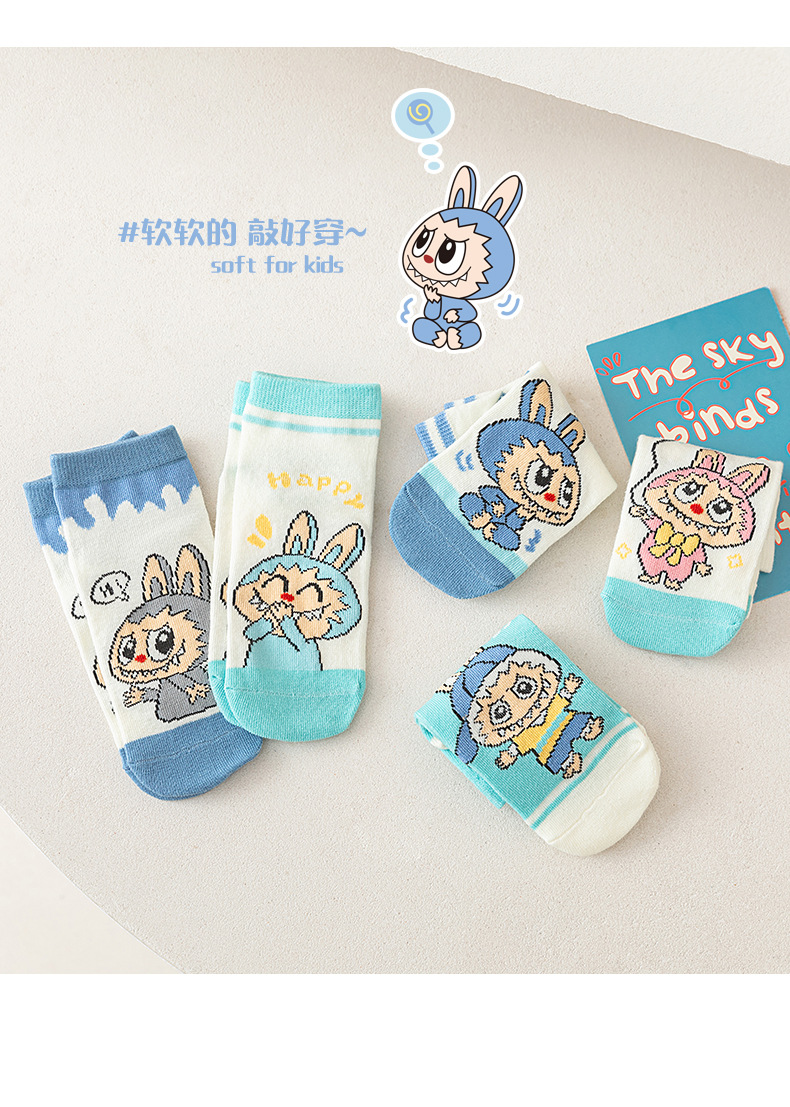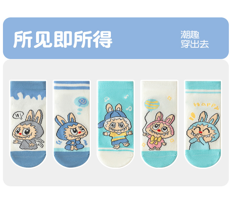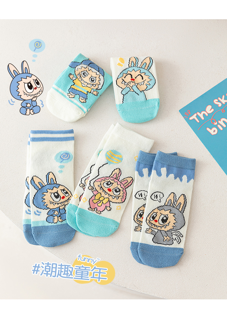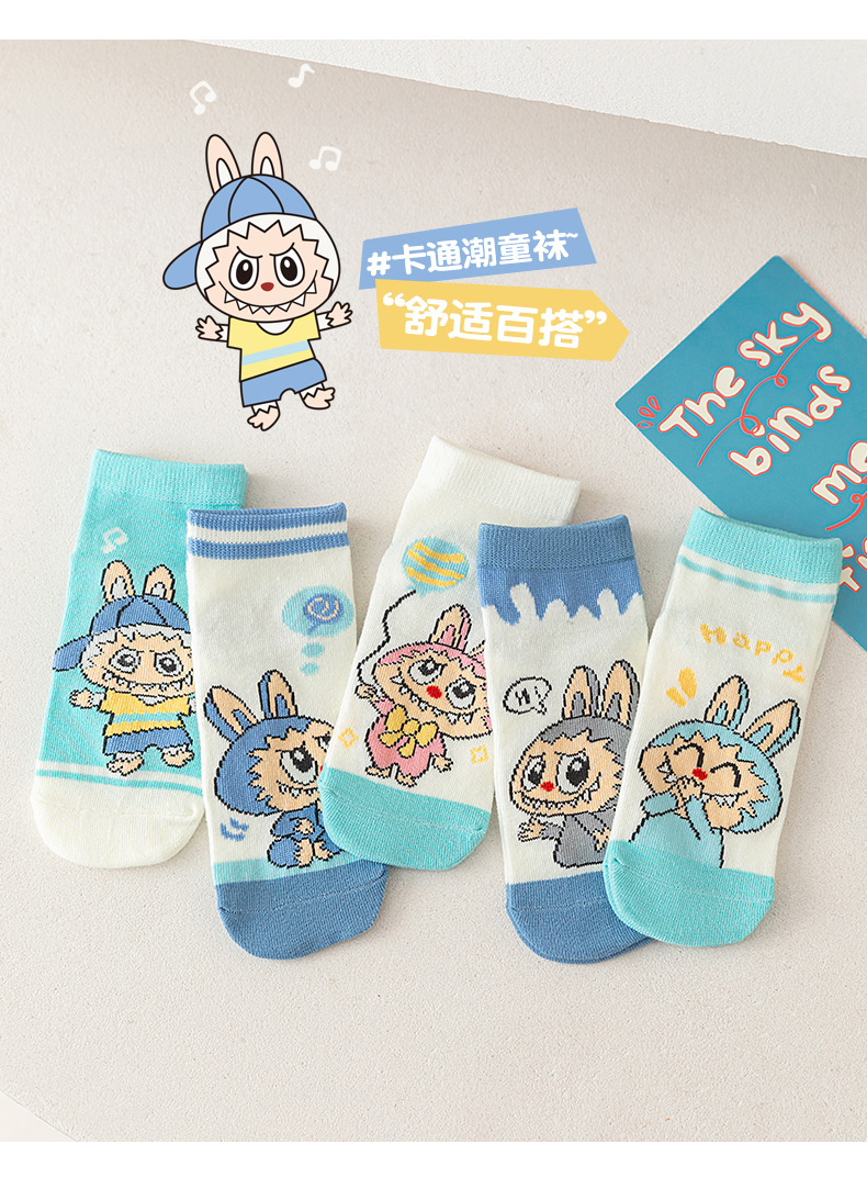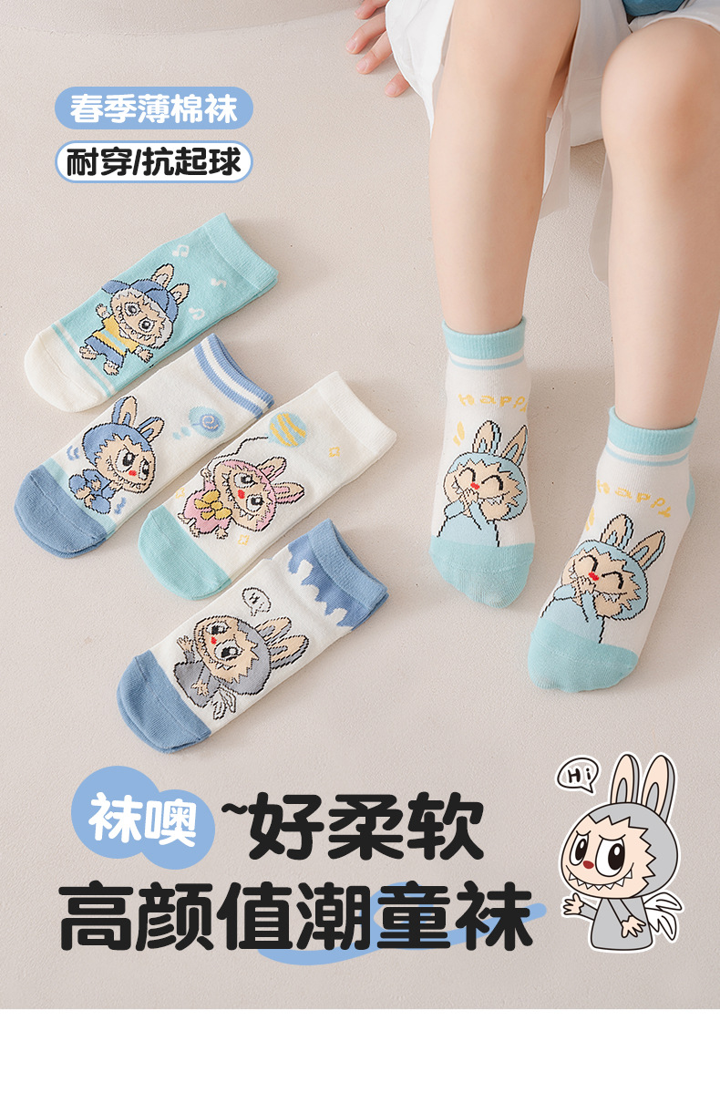 【开学季!5对超值装更划算!】卡通儿童袜子2025新款拉布布短筒袜,春夏季潮流可爱男女童棉袜👶 软糯亲肤不勒脚💖 5双装超值入手!