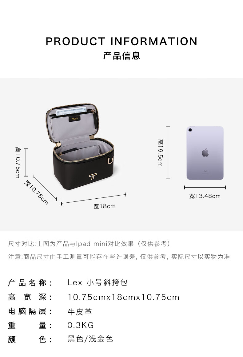 TUMI 斜挎包女 0196676DLGL-F 黑色/浅金色.【刻字后发出的商品,不支持退换货服务】