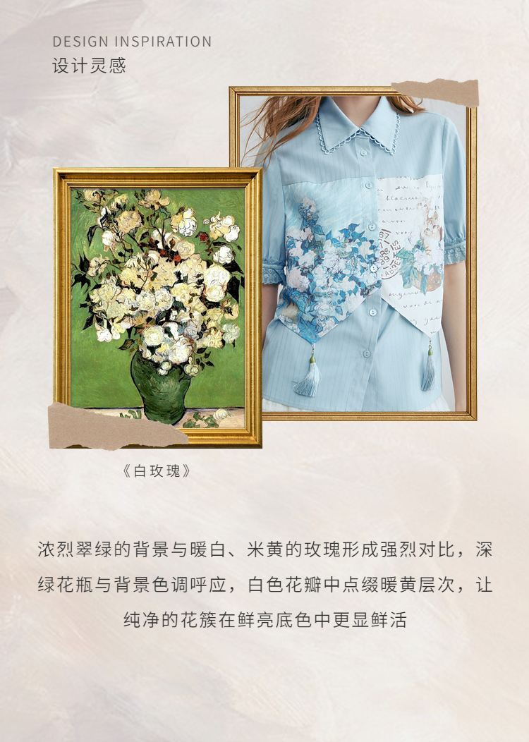 两三事梵高文艺春日序言2025春季新款蕾丝拼接荷叶边领绑带上衣女S25CLS342