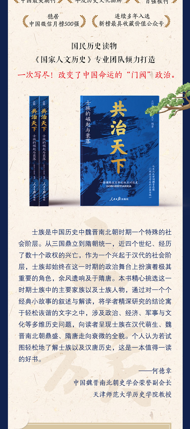 《共治天下:士族的崛起与衰落 》人民日报主编一部跨越五百年的权利争斗历史