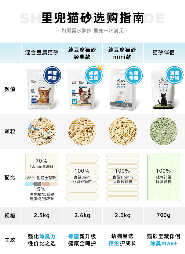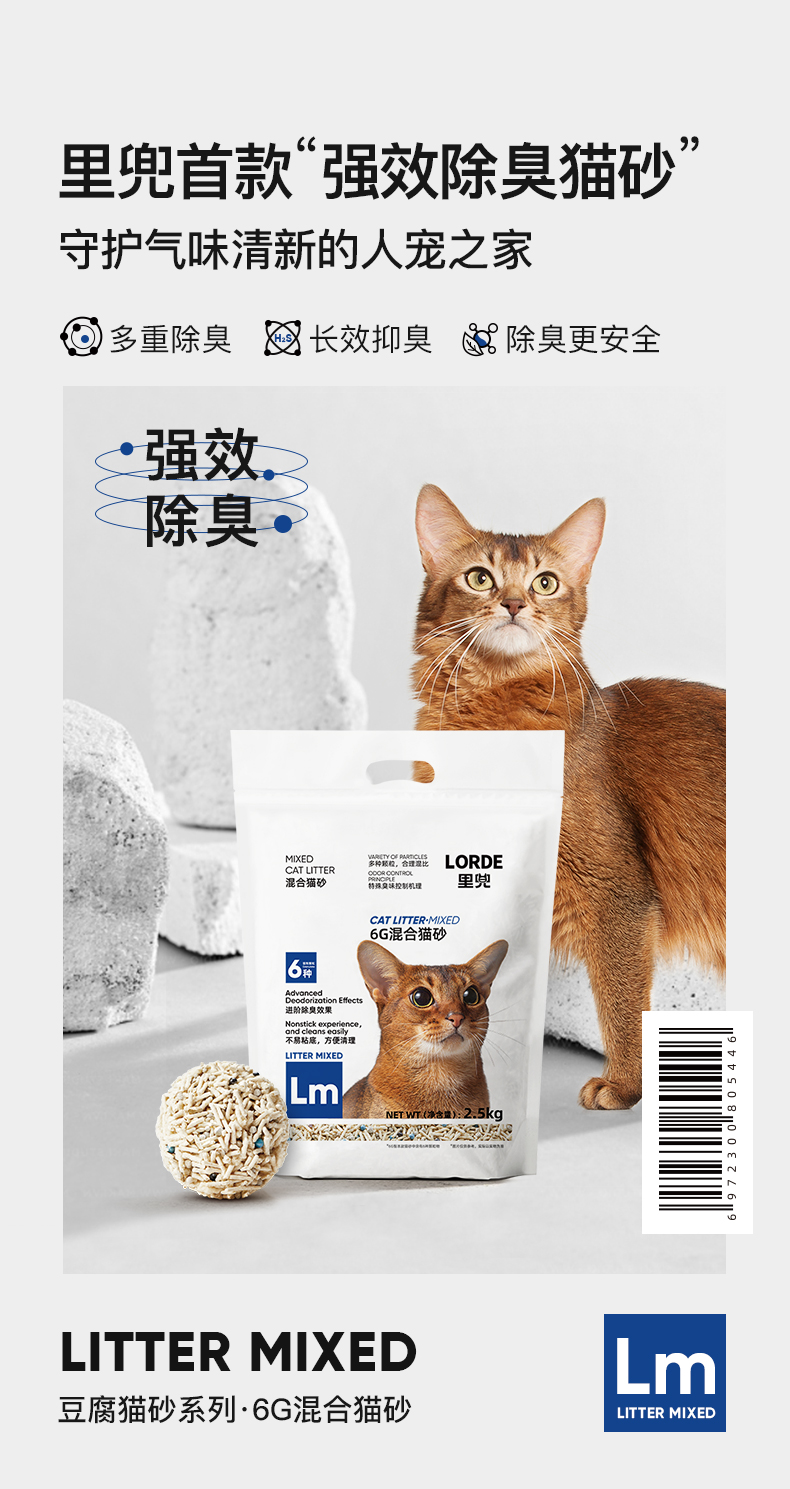 LORDE里兜猫砂 6G混合豆腐猫砂去味除臭2.5kg*6包