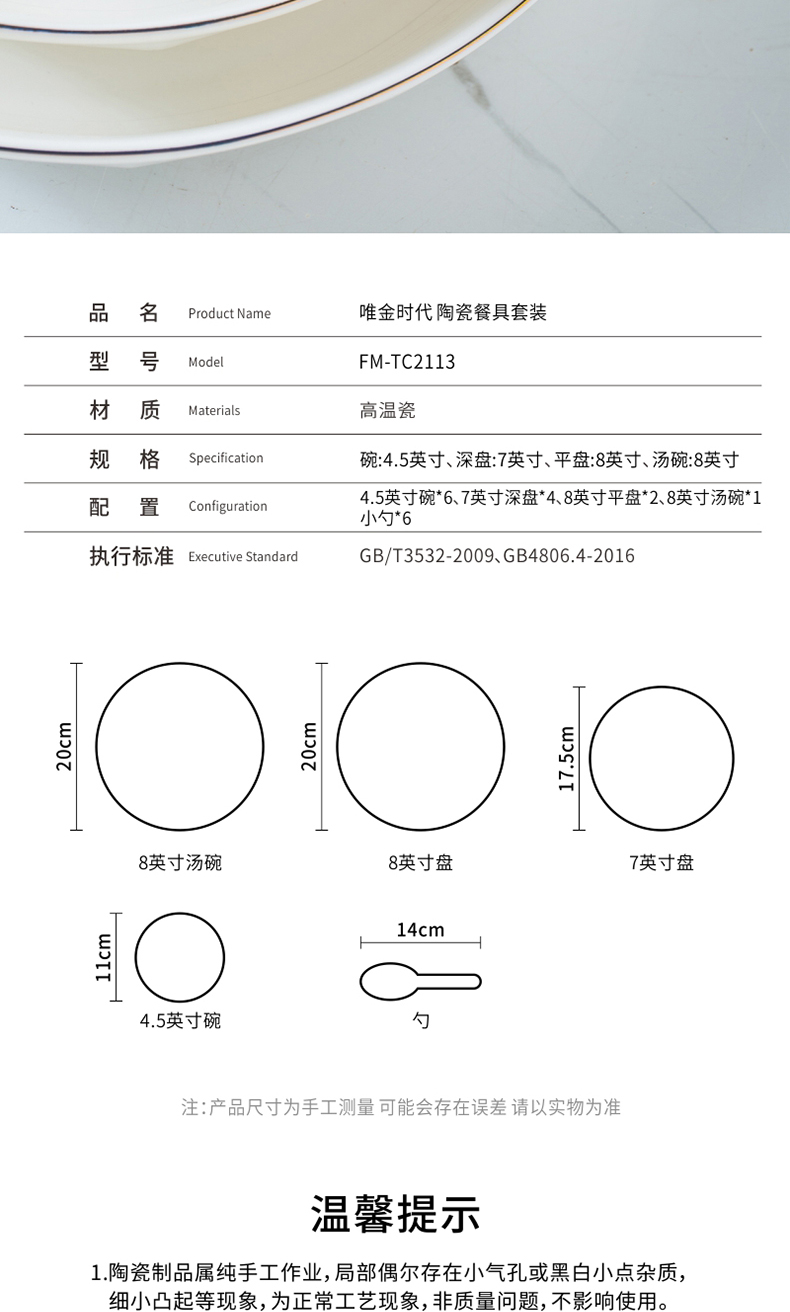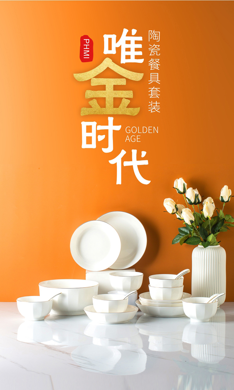菲米生活唯金时代陶瓷餐具套装碗蝶盘FM-TC2113