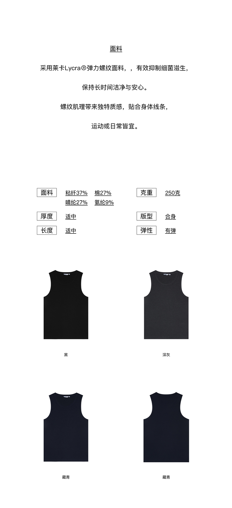 WassupHouse莱卡5A级抗菌弹力螺纹背心