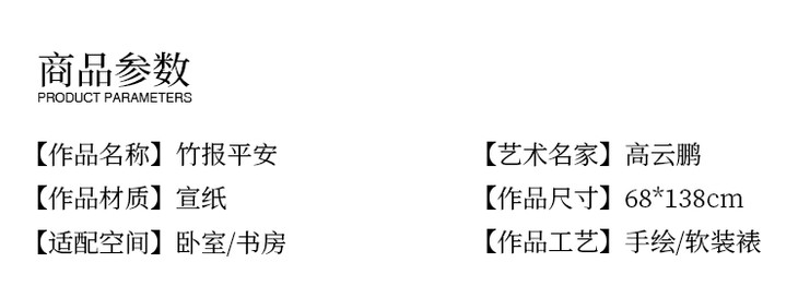高云鹏《竹报平安》68*138cm 花鸟横幅作品 卧室/书房挂画