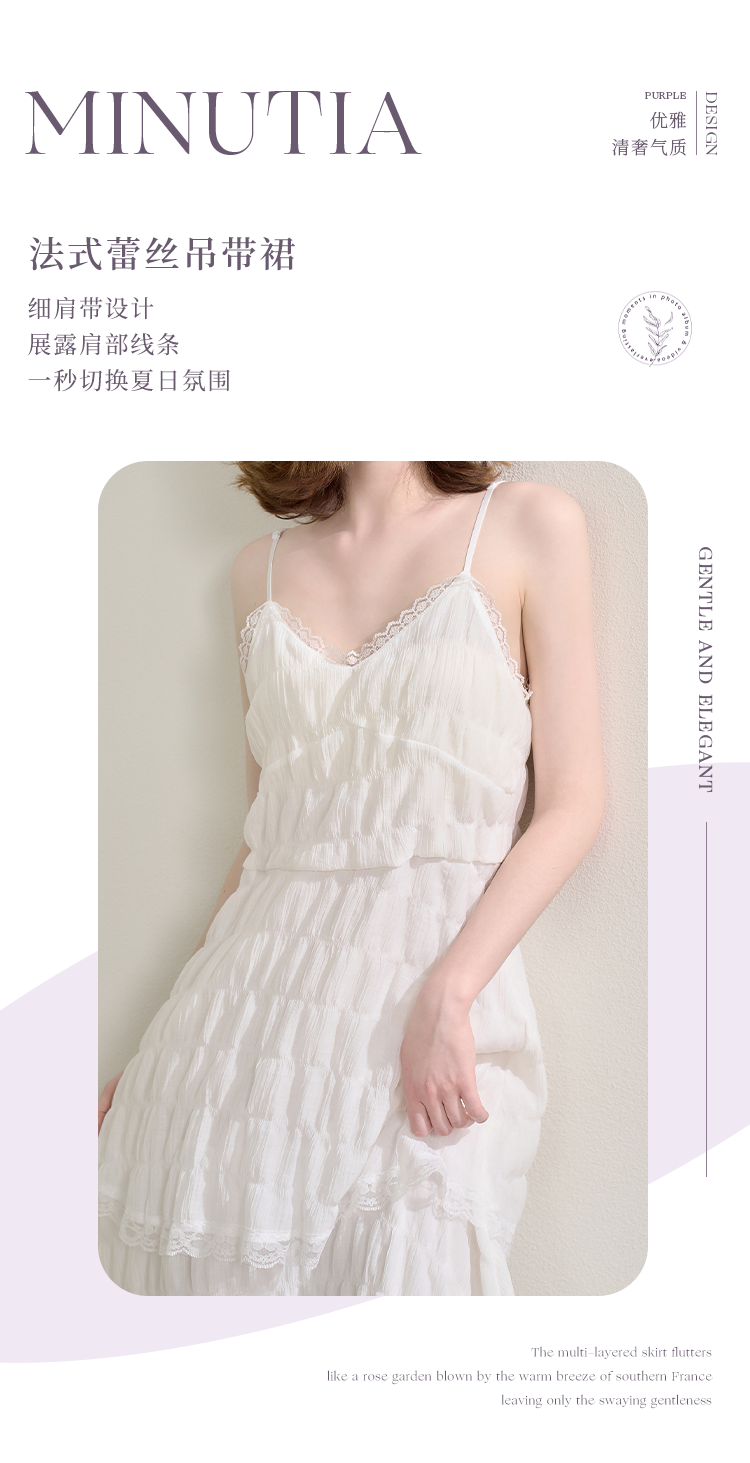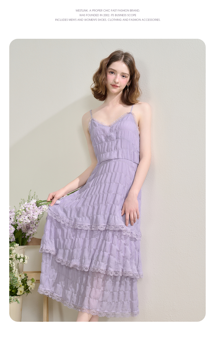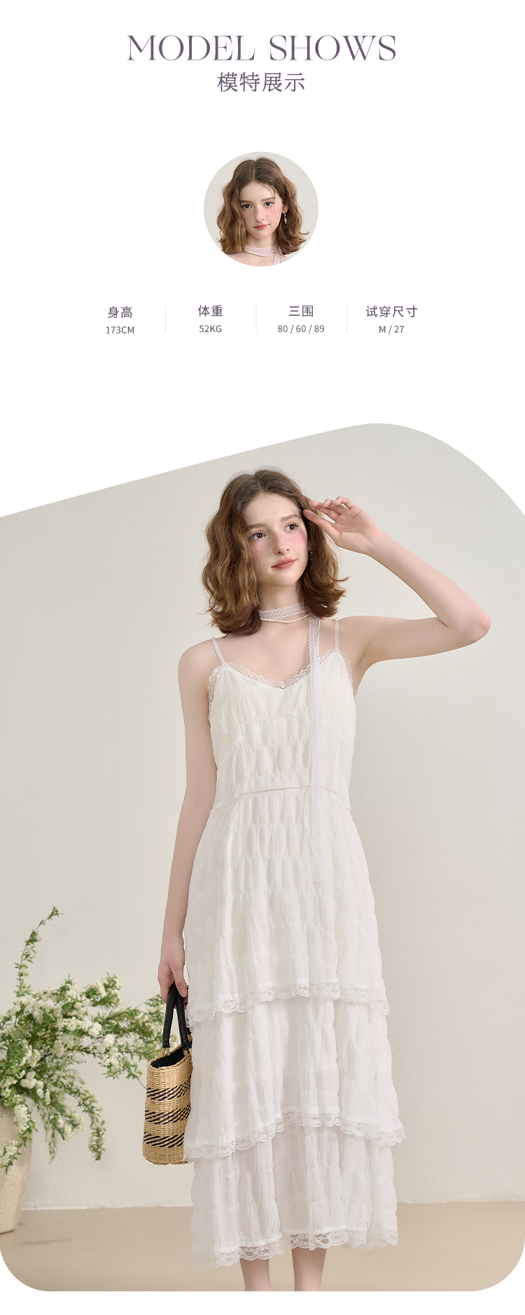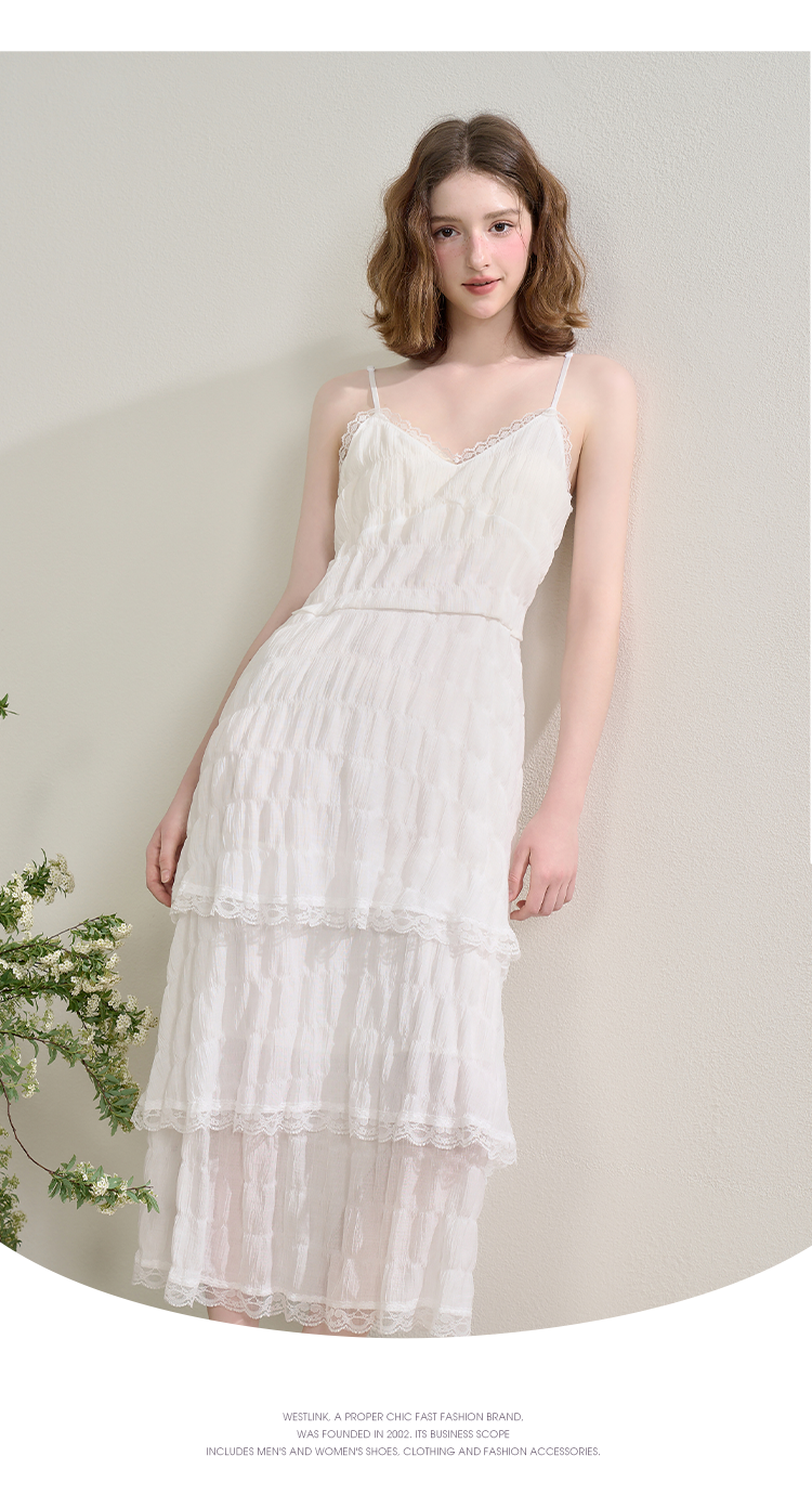 西遇吊带蕾丝蛋糕裙女夏季新款海边度假风法式v领连衣裙SS150345