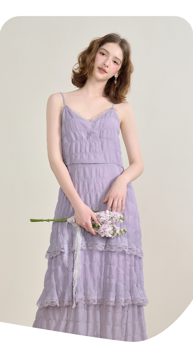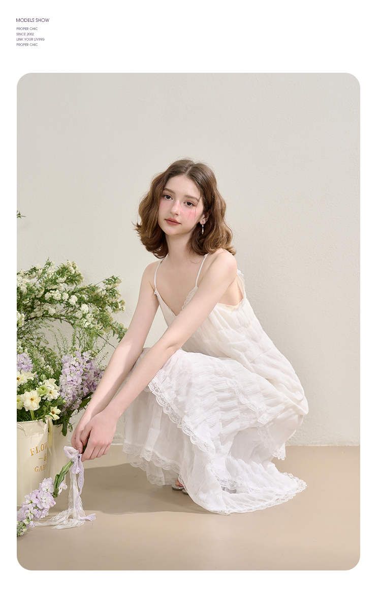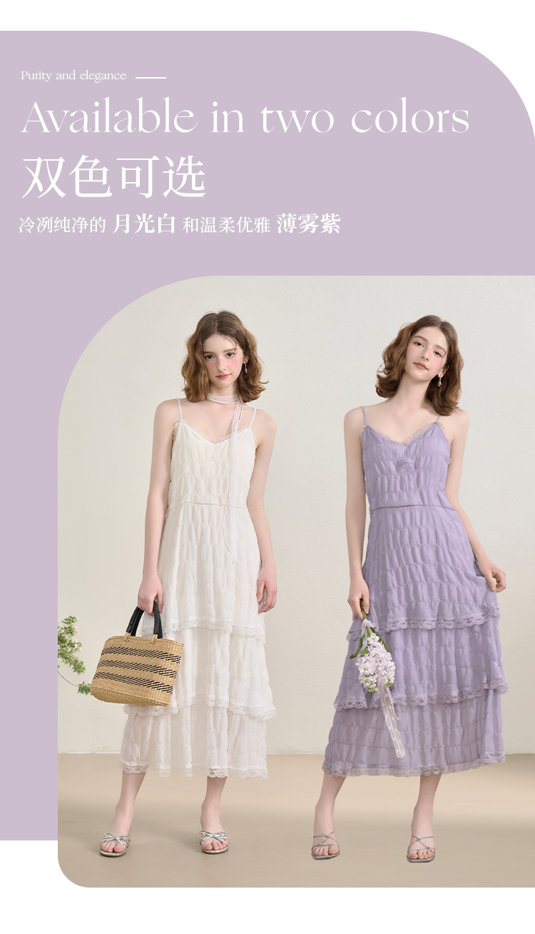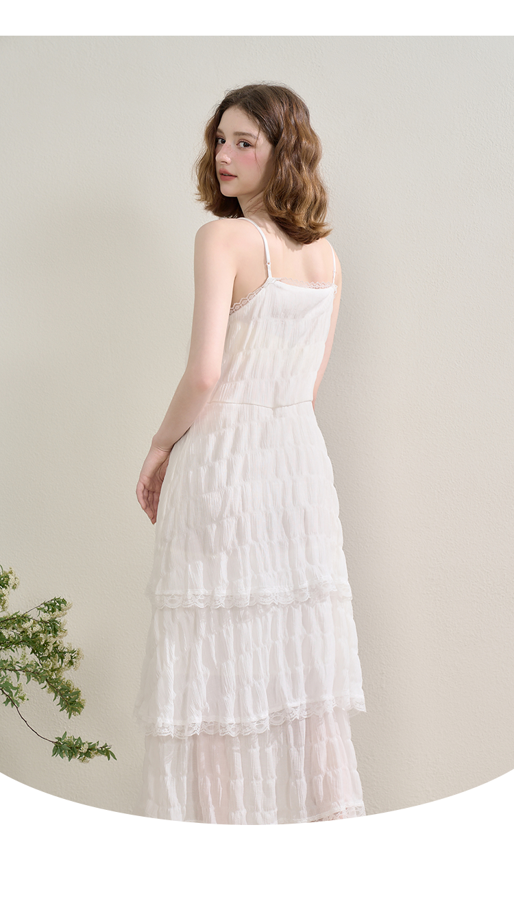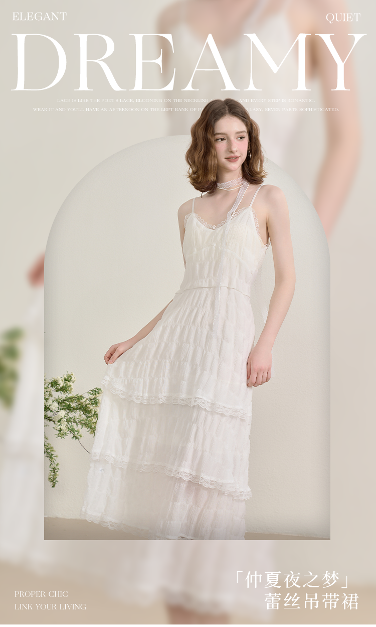 西遇吊带蕾丝蛋糕裙女夏季新款海边度假风法式v领连衣裙SS150345