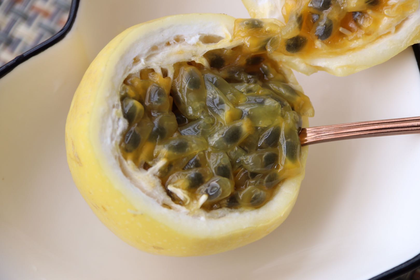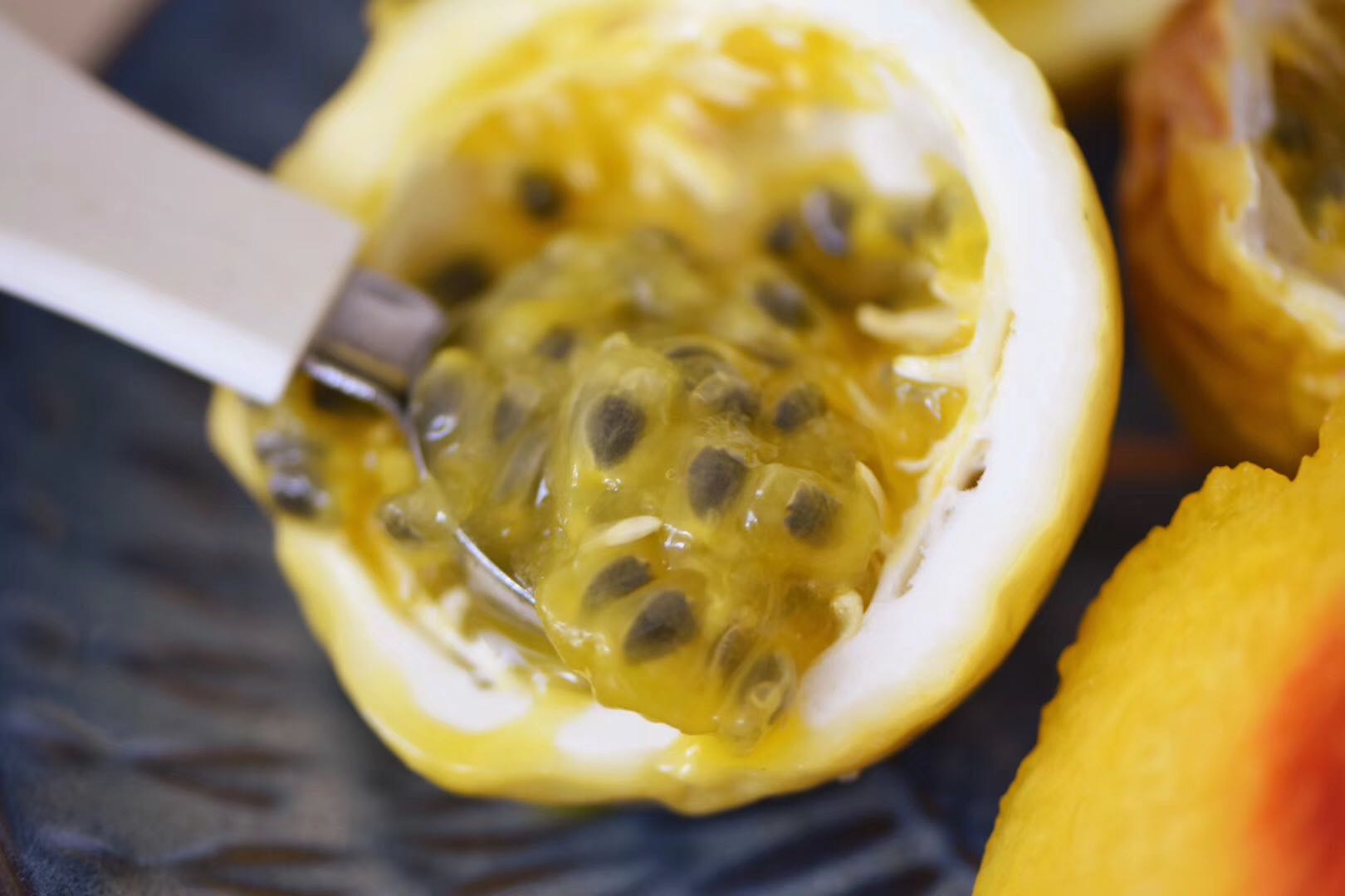 【品种介绍】百香果最常见的是黄金百香果和紫色百香果。其中黄金百香果果汁含量约45%、而紫色百香果果汁含量约 35%;黄金百香果清甜少酸,紫色百香果的酸味较重。而我们做的小黄金则是黄金百香果中口感最好,甜度高香味浓。